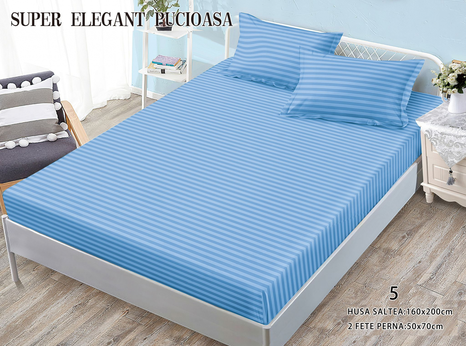 - cearceaf cu elastic potrivit pentru saltea de 160x200x25cm(perfect intins) sau 140x200x25cm(mai lejer)