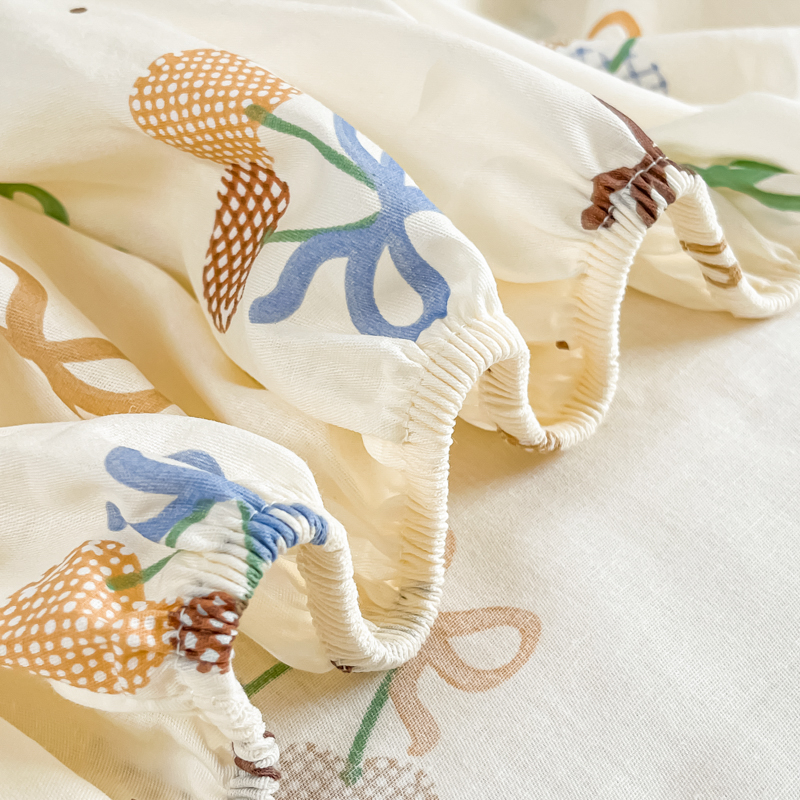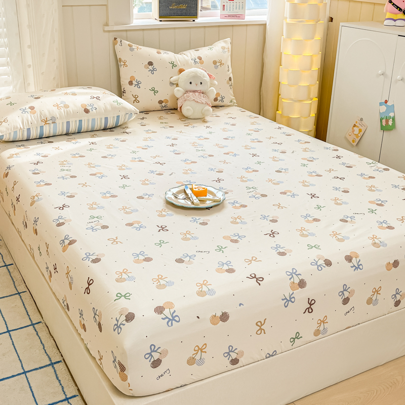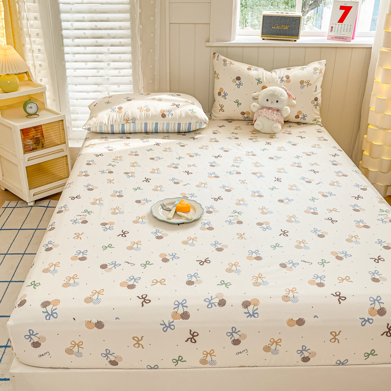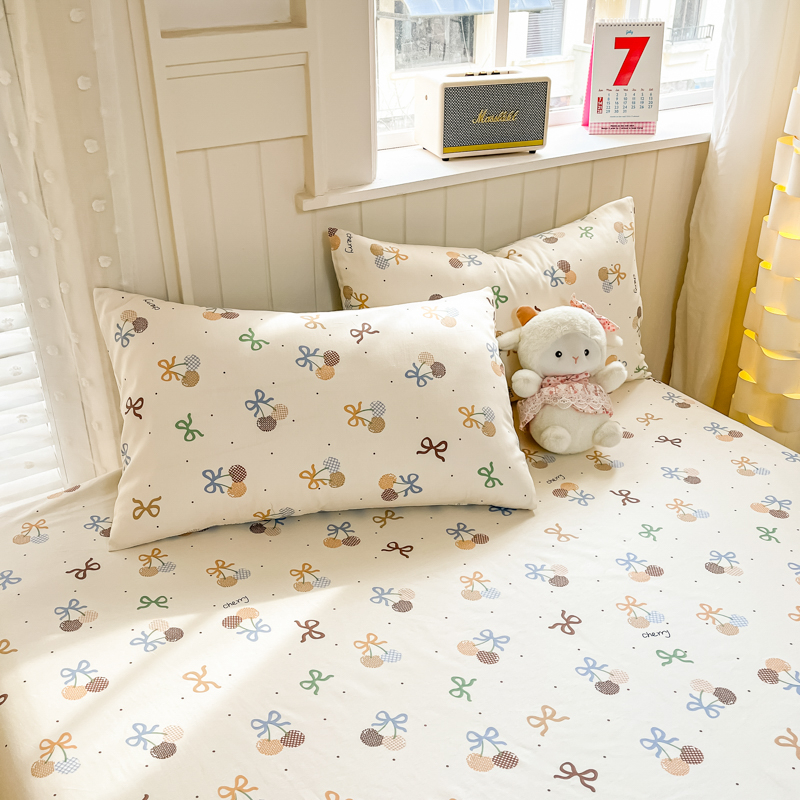 Husa Din Bumbac 100% Ranforce Cu Elastic Si Fete De Perna 160x200cm - Cirese Cu Fundite