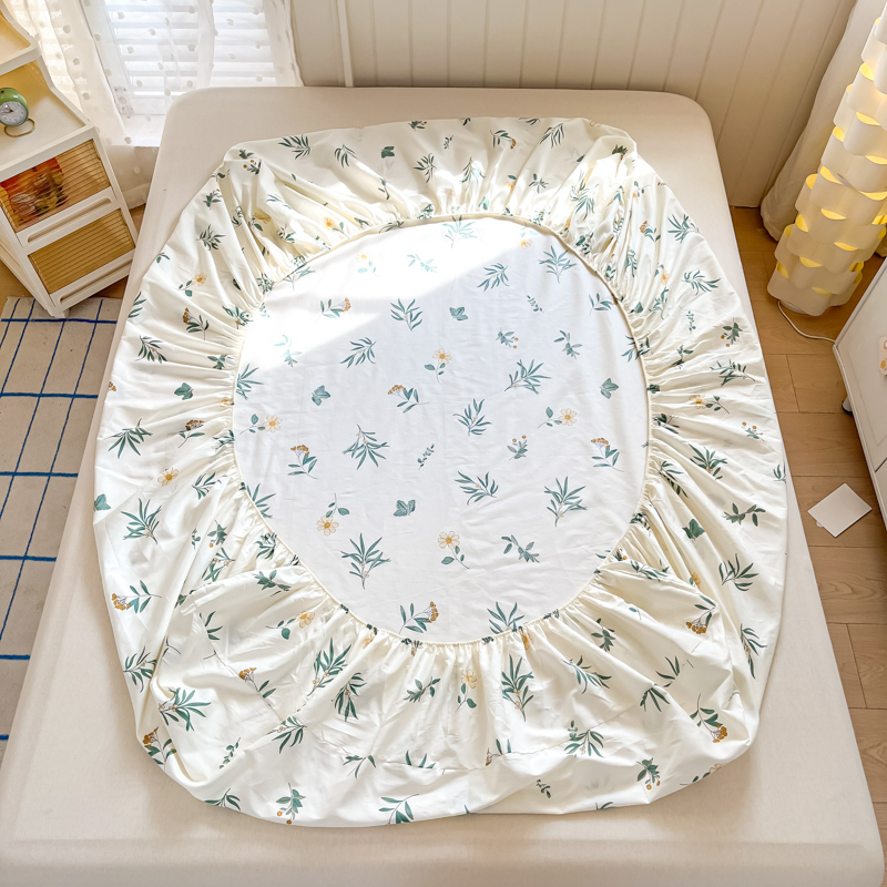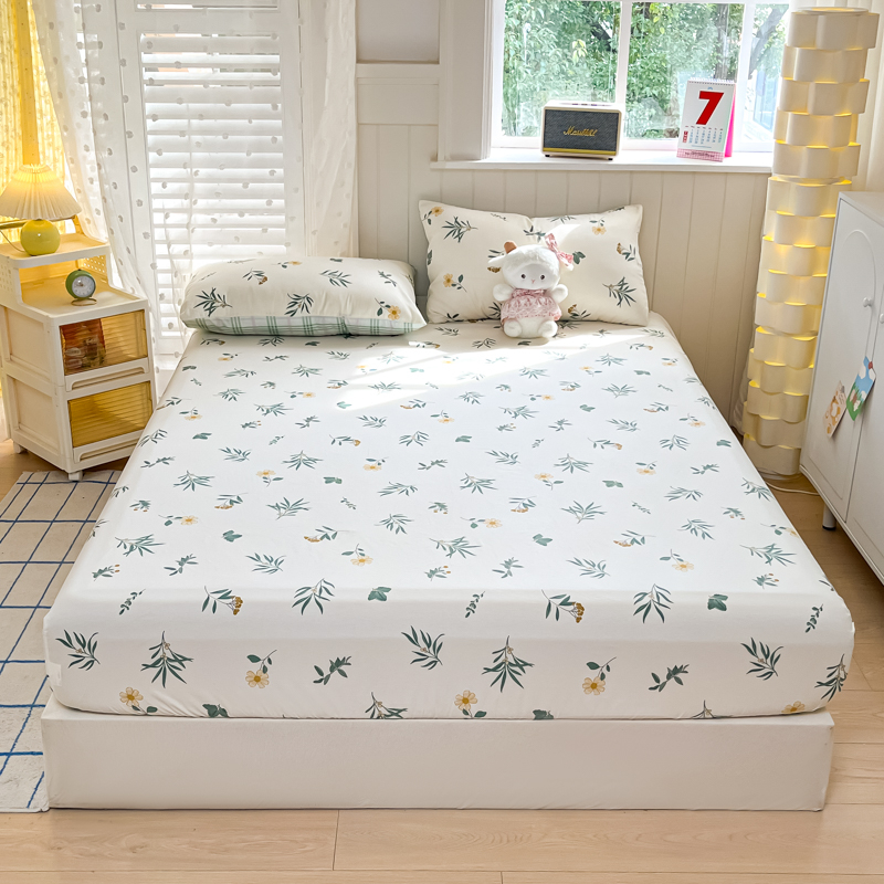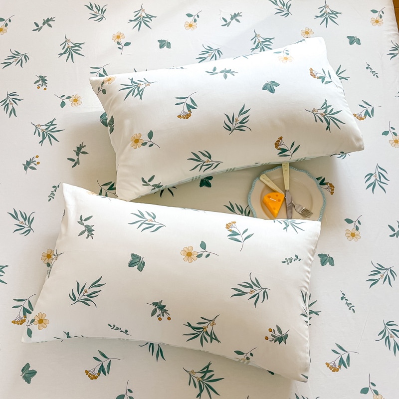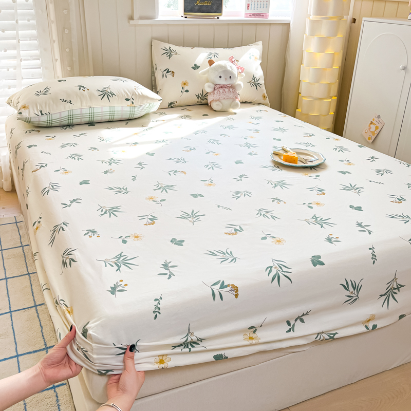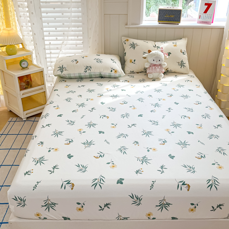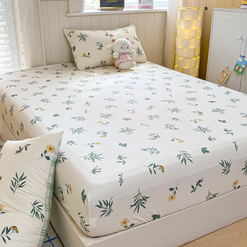 Husa Din Bumbac 100% Ranforce Cu Elastic Si Fete De Perna 160x200cm - Flori Si Frunze