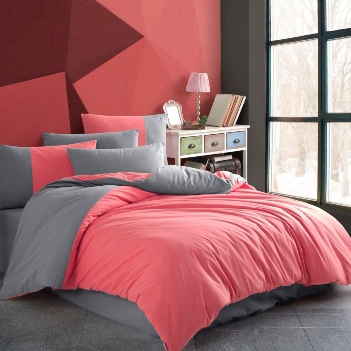 Lenjerie De Pat Bumbac 100% Poplin 1 Persoana - Roz Si Gri