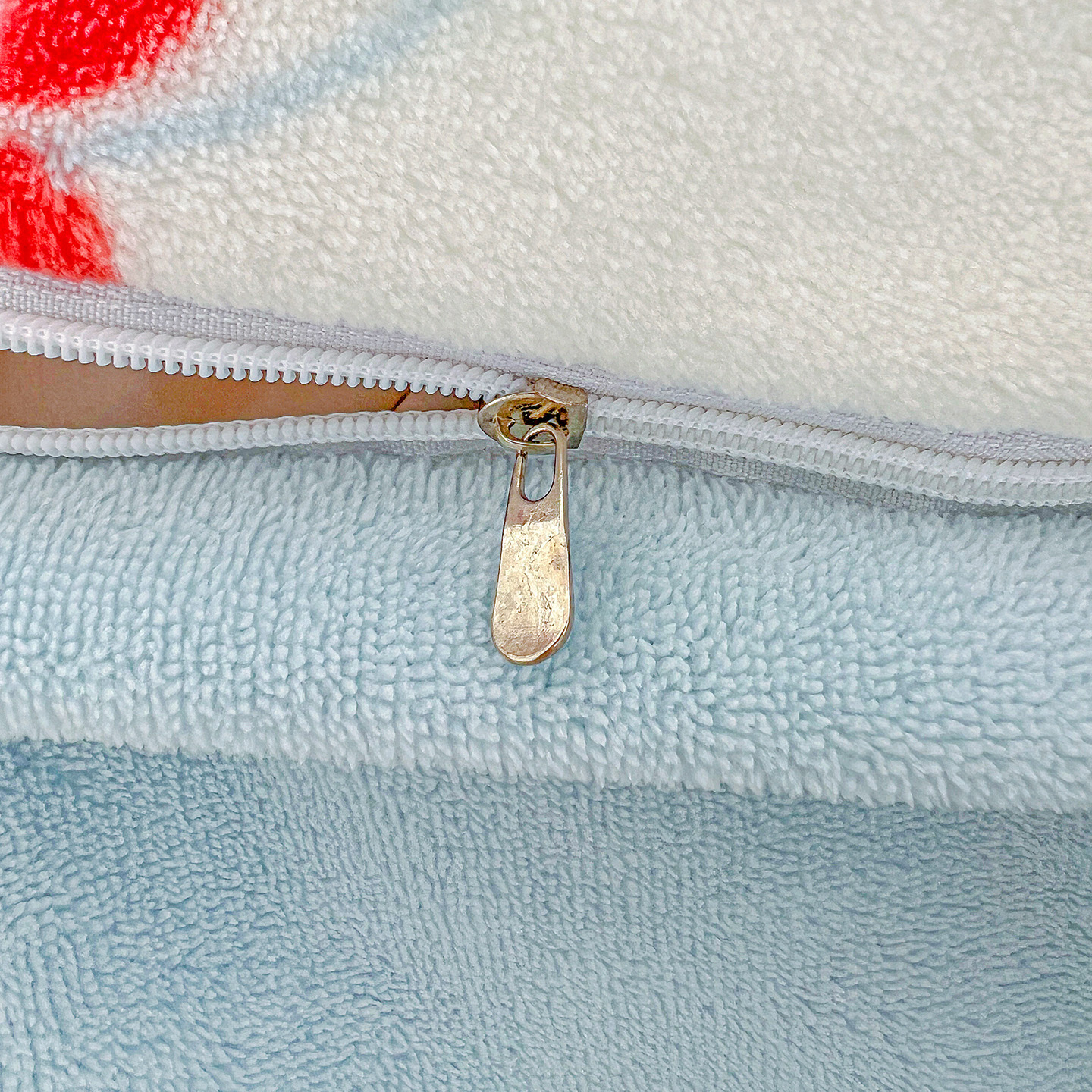 • Cearceaful pentru pilotă se închide cu fermoar, iar fetele de perna sunt petrecute parte peste parte suficient astfel incat perna sa nu iasa din fata de perna;
