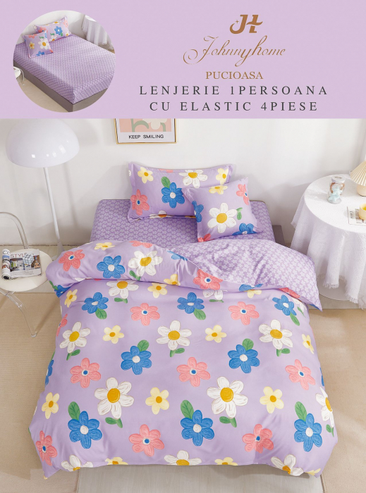 Lenjerie De Pat Finet Cu Elastic 1 Persoana - Floricele Desenate