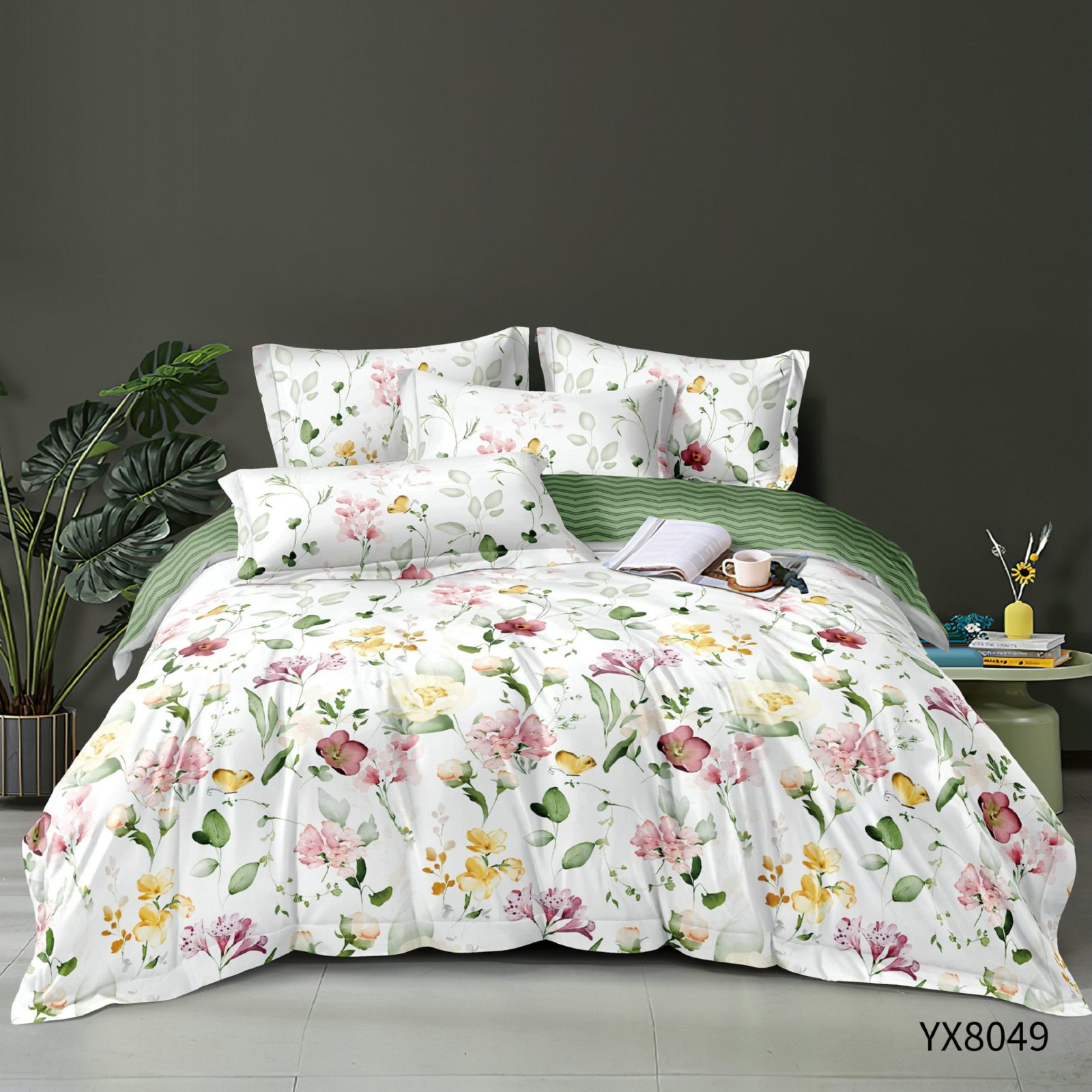Lenjeria de pat are doua fete, pe o parte un imprimeu, pe cealalta alt imprimeu, astfe ca poti de fiecare data sa schimbi decorul camerei.