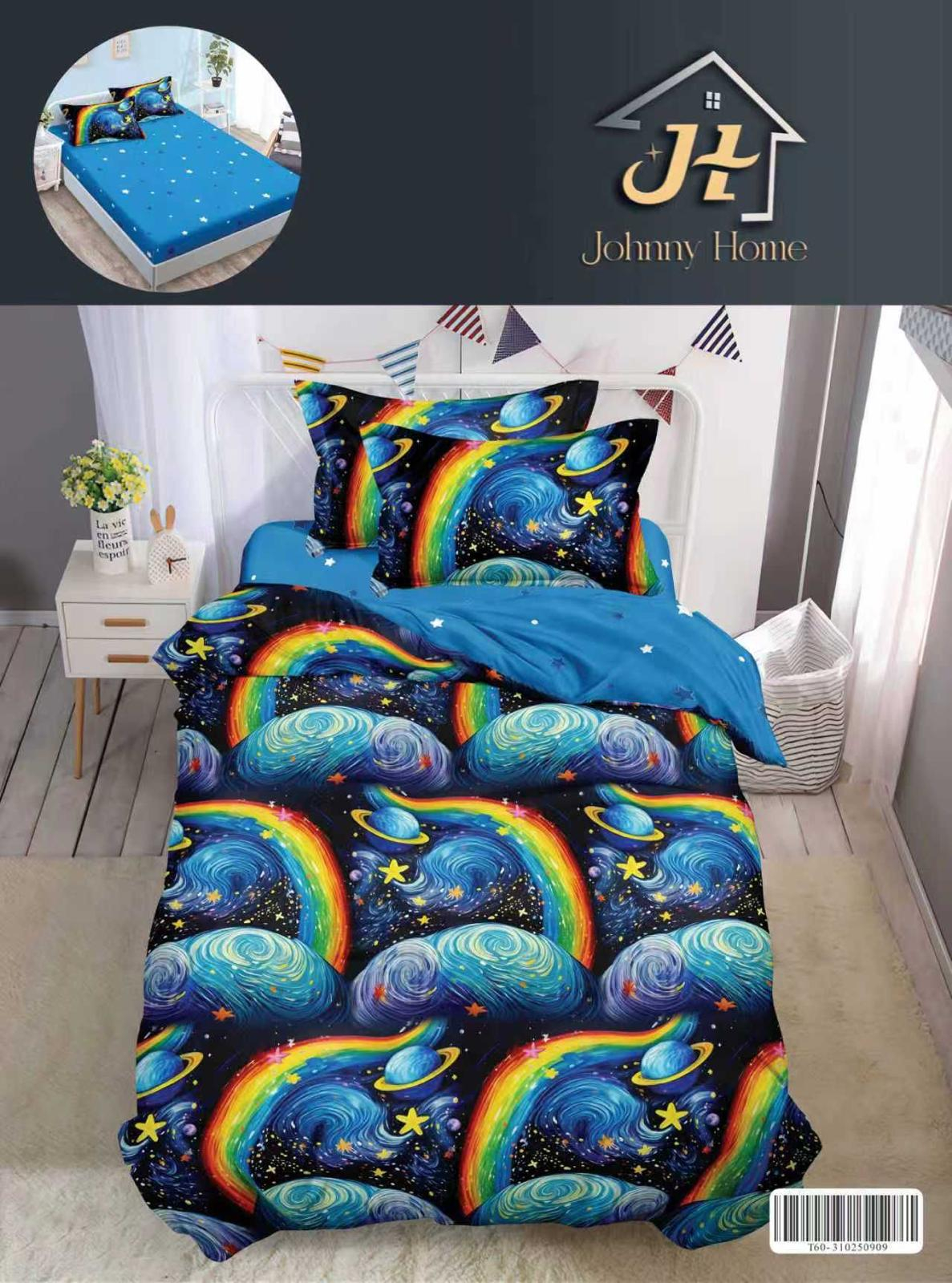 Lenjerie De Pat Finet Cu Elastic 1 Persoana - Curcubeu In Spatiu