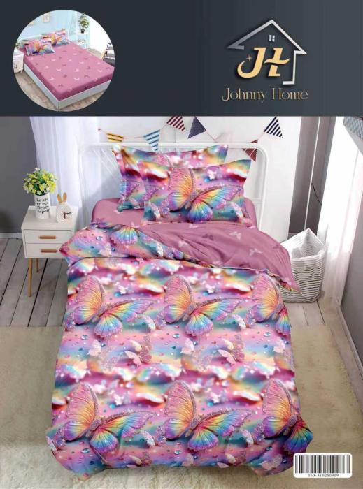 Lenjerie De Pat Finet Cu Elastic 1 Persoana - Fluturasi Cu Sclipici
