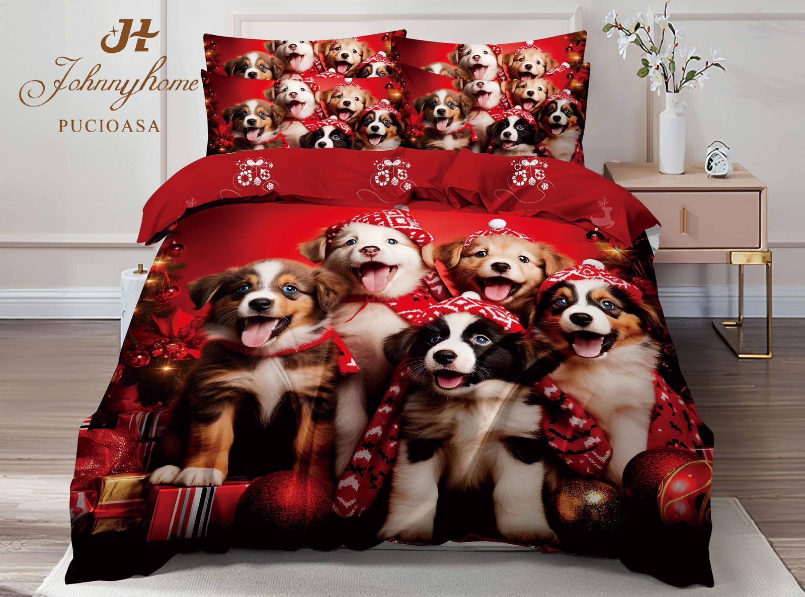 Lenjerie De Pat Bumbac Tip Finet Model Craciun - Catelusi De Craciun