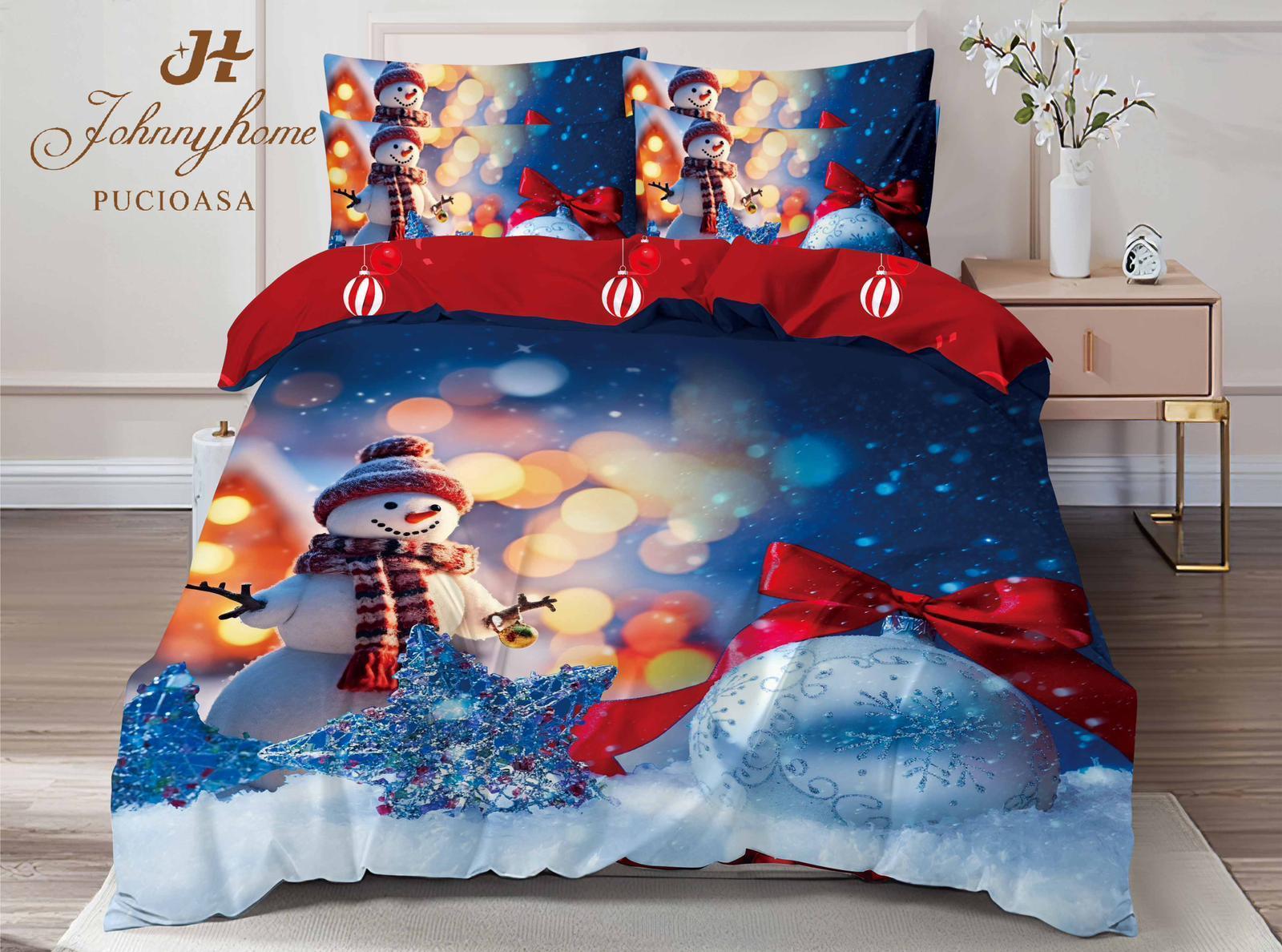 Lenjerie De Pat Bumbac Tip Finet Model Craciun - Glob Argintiu