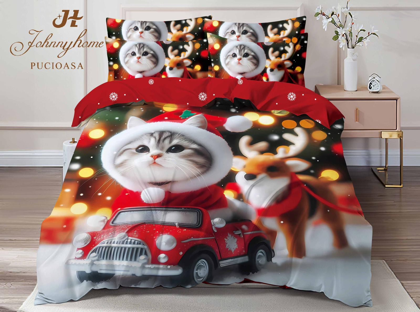 Lenjerie De Pat Bumbac Tip Finet Model Craciun - Pisicuta Dragalasa