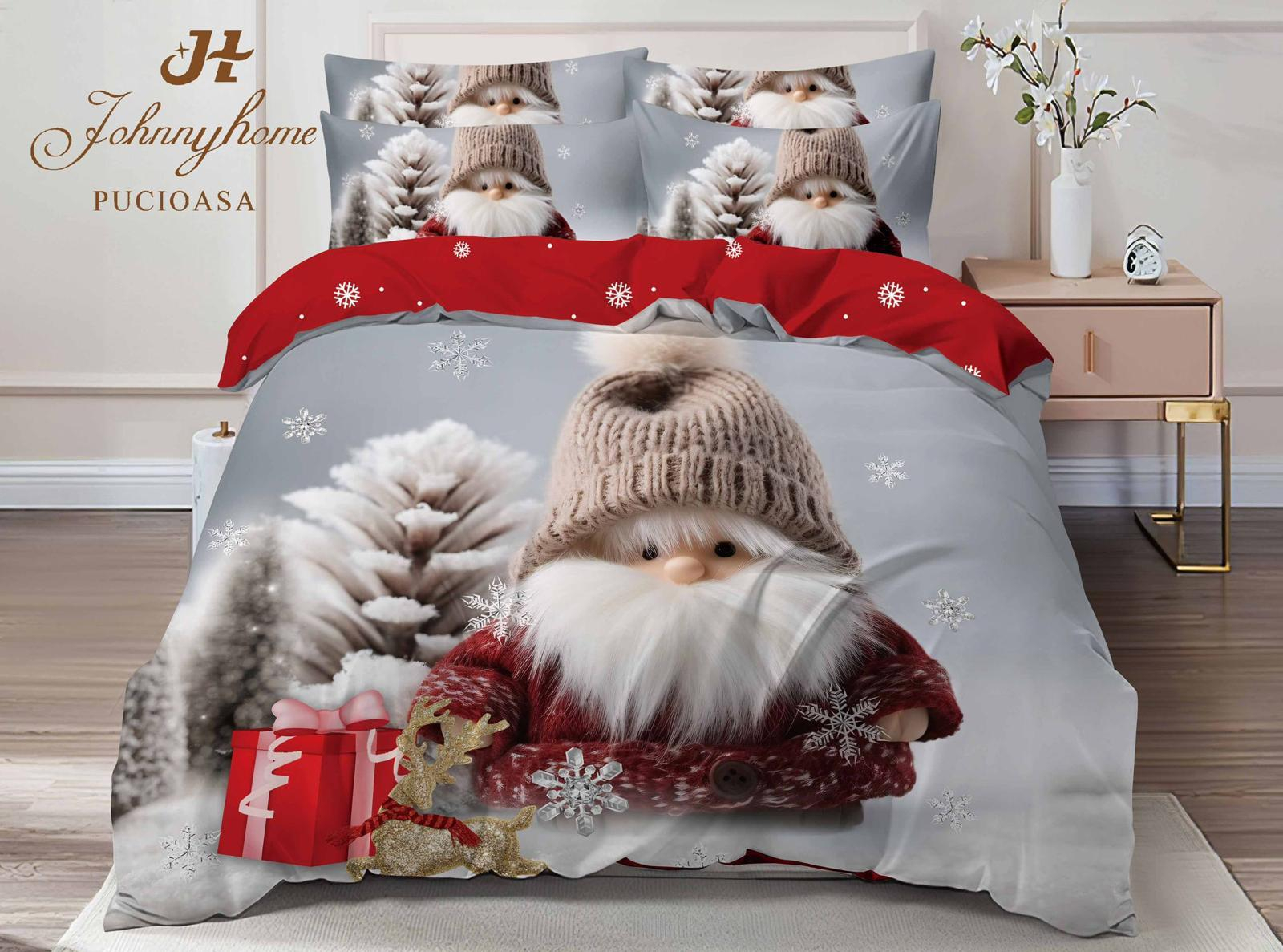 Lenjerie De Pat Bumbac Tip Finet Model Craciun - Spiridusul Barbos
