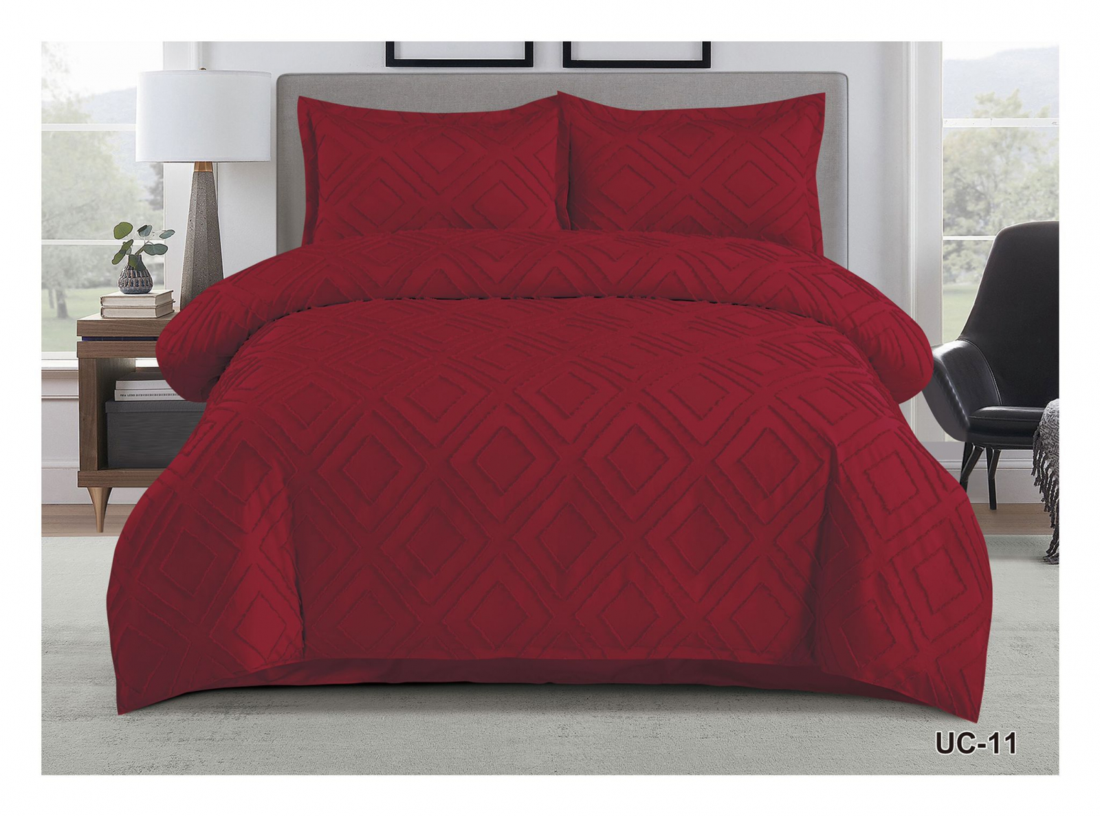 Lenjerie De Pat Din Finet Imprimeu Gofrat - Bordo Romb