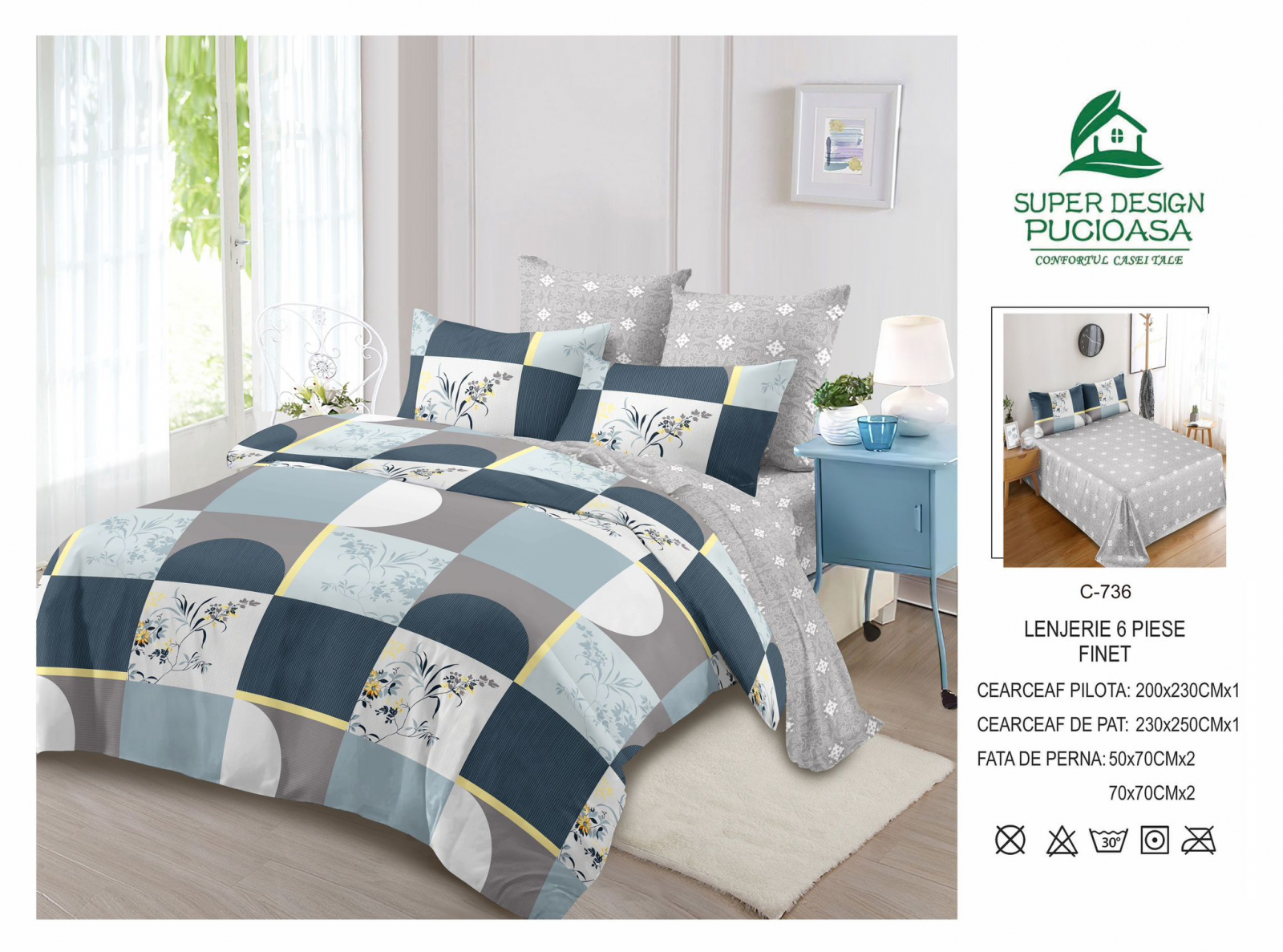 Materialul din Bumbac Tip Finet este moale si placut la atingere, fiind potrivit pentru orice anotimp. Imprimeurile sunt atent alese, pentru ca tu sa te bucuri din plin de timpul petrecut in dormitor.