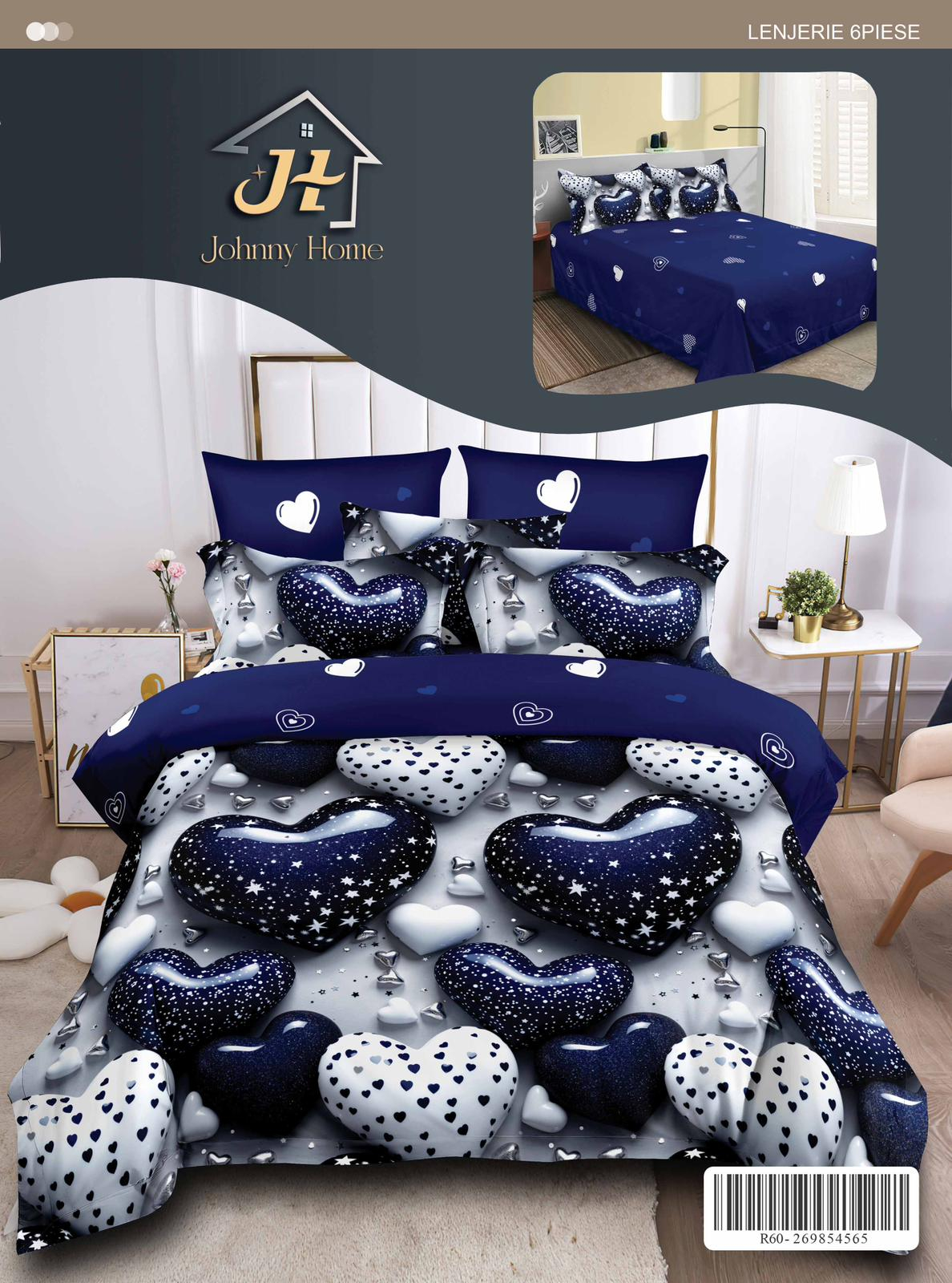 Lenjerie De Pat Finet Superior - Inimioare Glazurate Bleumarin