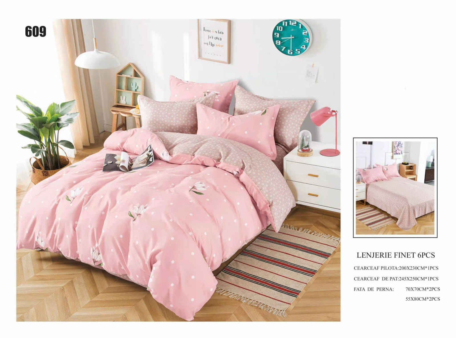 Lenjerii De Pat Din Finet 6 Piese - Roz
