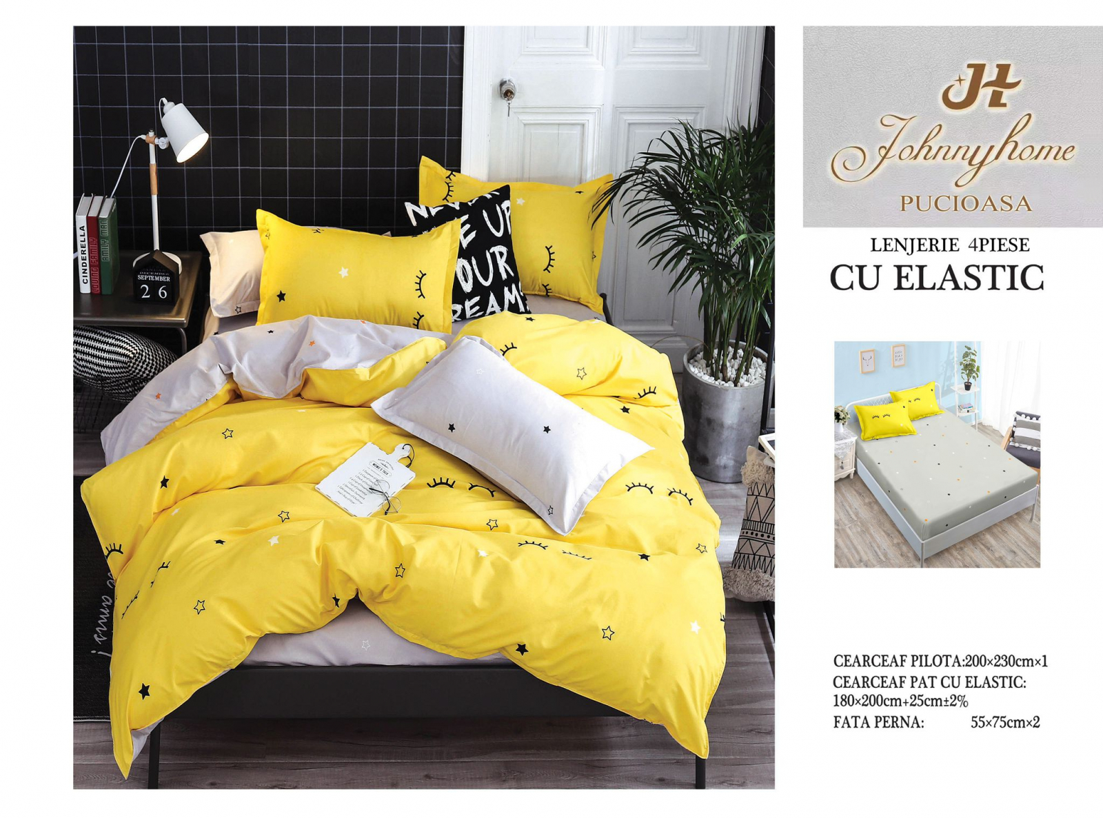 Setul conține: - cearceaf cu elastic pentru saltea de 180x200x20cm (perfect intins) sau 160x200x20cm (putin mai lejer)