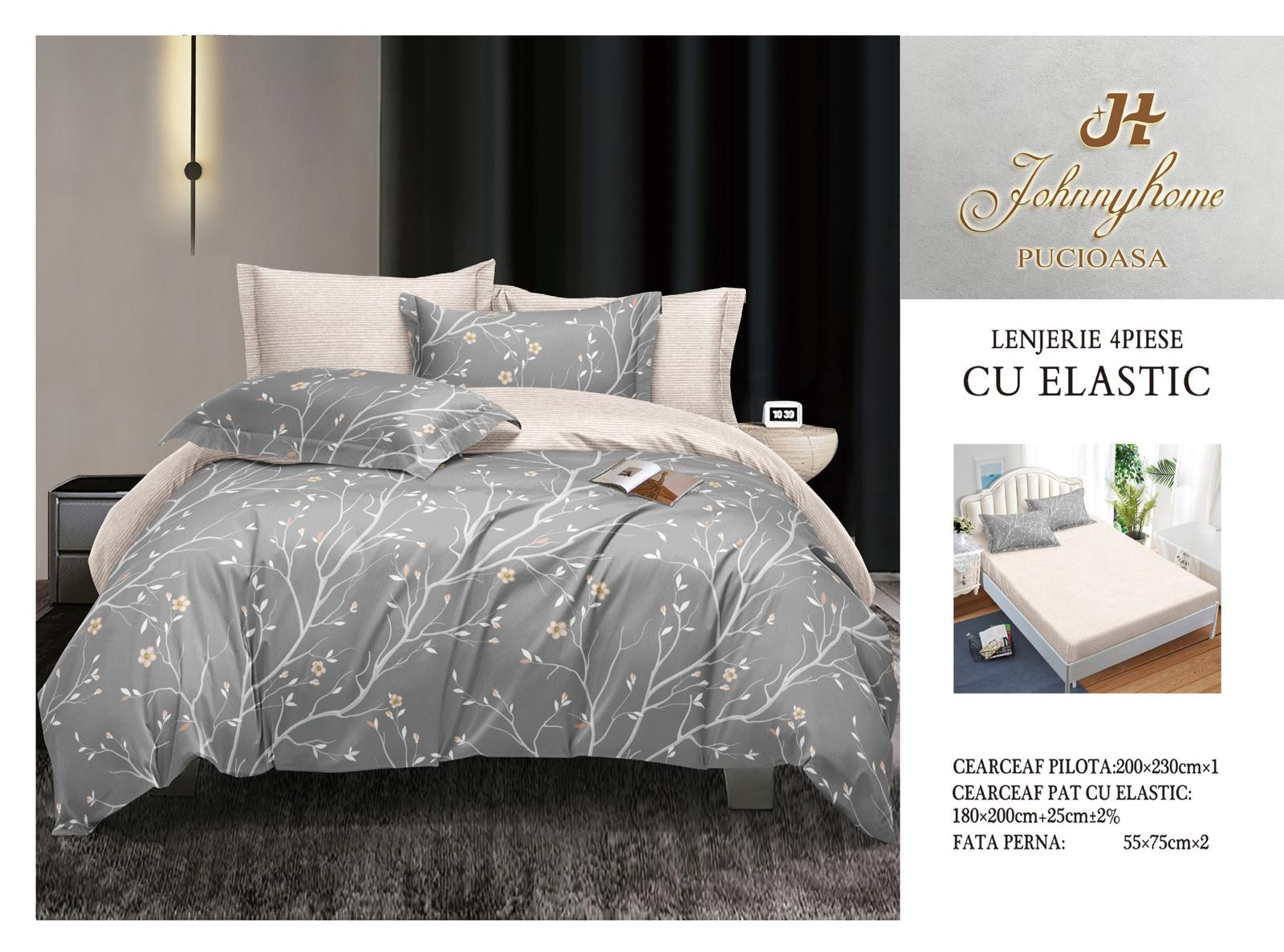 Lenjerie De Pat Bumbac Satinat Cu Elastic - Gri Cu Crengute