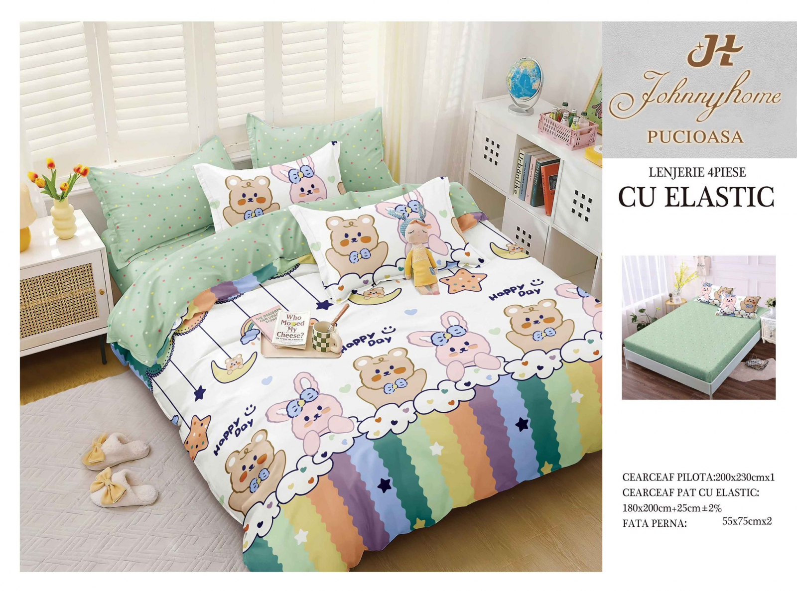 - cearceaf cu elastic pentru saltea de 180x200x20cm (perfect intins) sau 160x200x20cm (putin mai lejer)