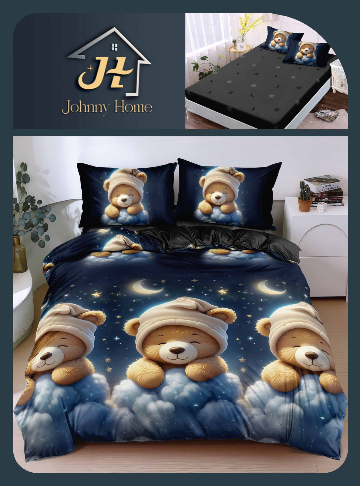 Lenjerie De Pat Bumbac Satinat Cu Elastic - Ursuleti Adormiti