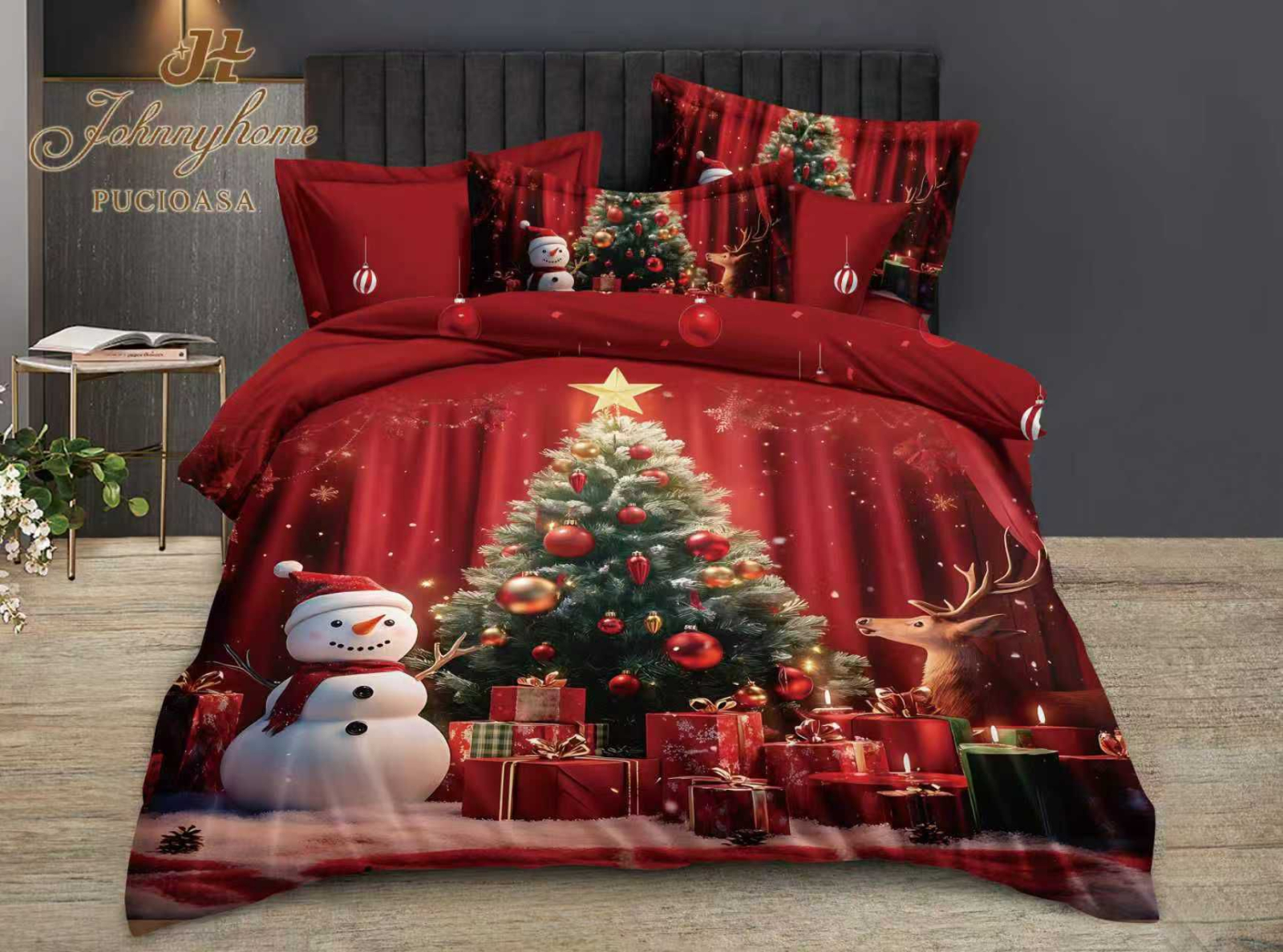 Lenjerie De Pat Bumbac Tip Finet Model Craciun - Cadouri Sub Brad