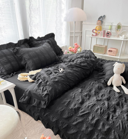 Lenjerie De Pat Creponata Cu Volanase - Negru