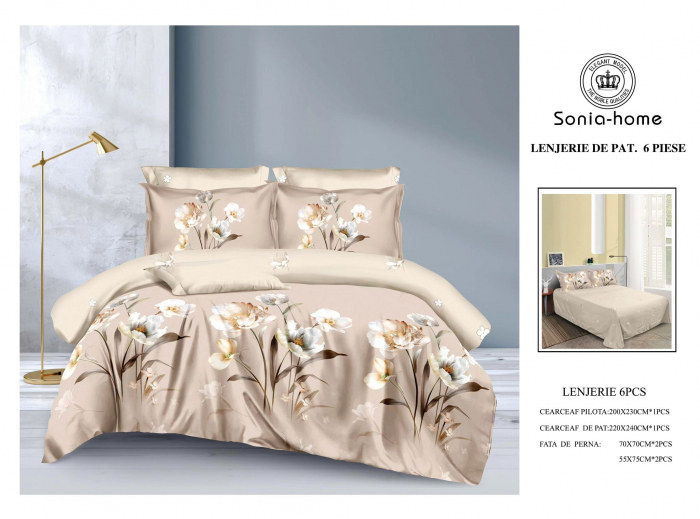 Lenjerie De Pat Din Finet - Bej Cu Flori