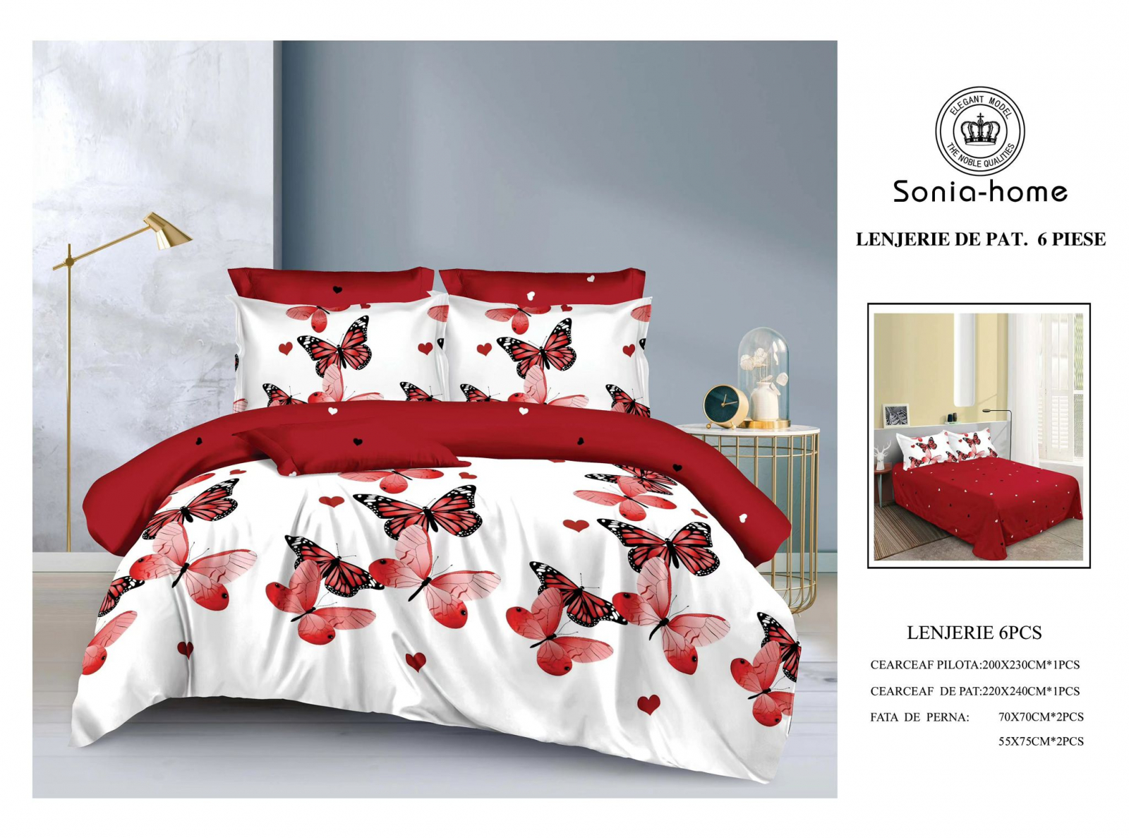 Fețele de pernă sunt petrecute parte peste parte suficient astfel încât perna să nu iasă din fața de pernă. Fețele de pernă pot fi diferite față de poza de prezentare, în funcție de cum este croit materialul în procesul de producție. Lenjeria de pat are doua fete, pe o parte un imprimeu, pe cealalta alt imprimeu, astfel ca poti de fiecare data sa schimbi decorul camerei.