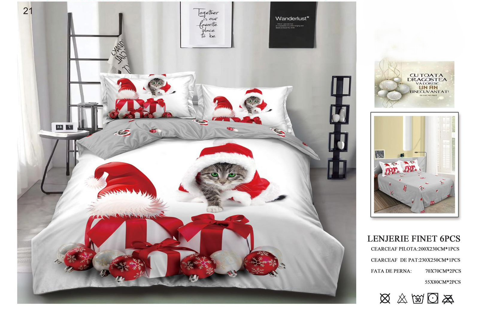 Lenjerie De Pat Finet Craciun - Pisica Si Cadourile
