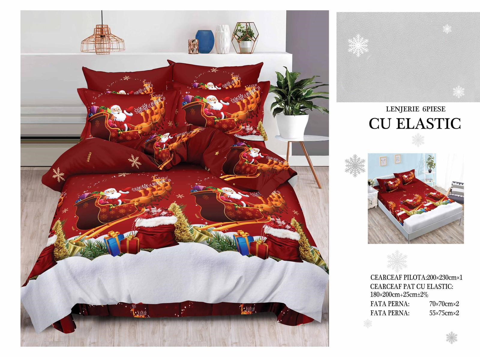 Lenjerie De Pat Finet Cu Elastic Craciun - Sacul Plin Cu Cadouri