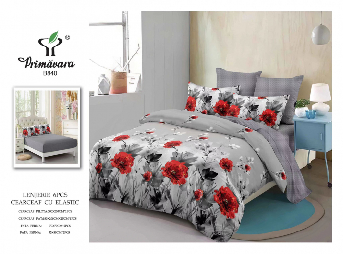 Lenjerie De Pat Finet Cu Elastic - Maci Rosii