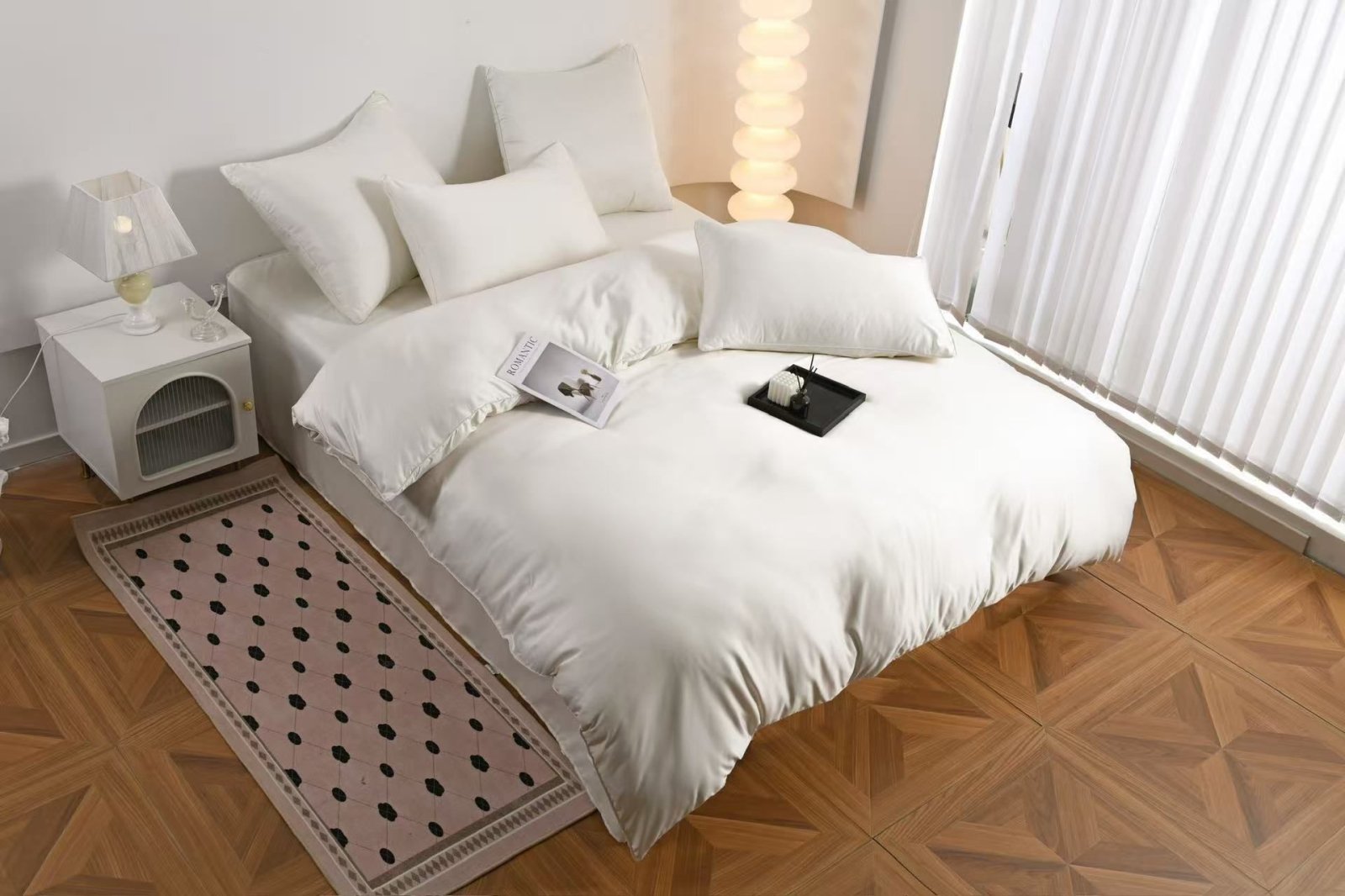 Transformă-ți dormitorul într-un sanctuar al rafinamentului și confortului cu setul nostru exclusiv de pilotă și lenjerie din mătase.