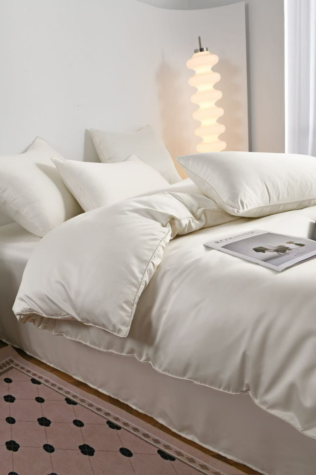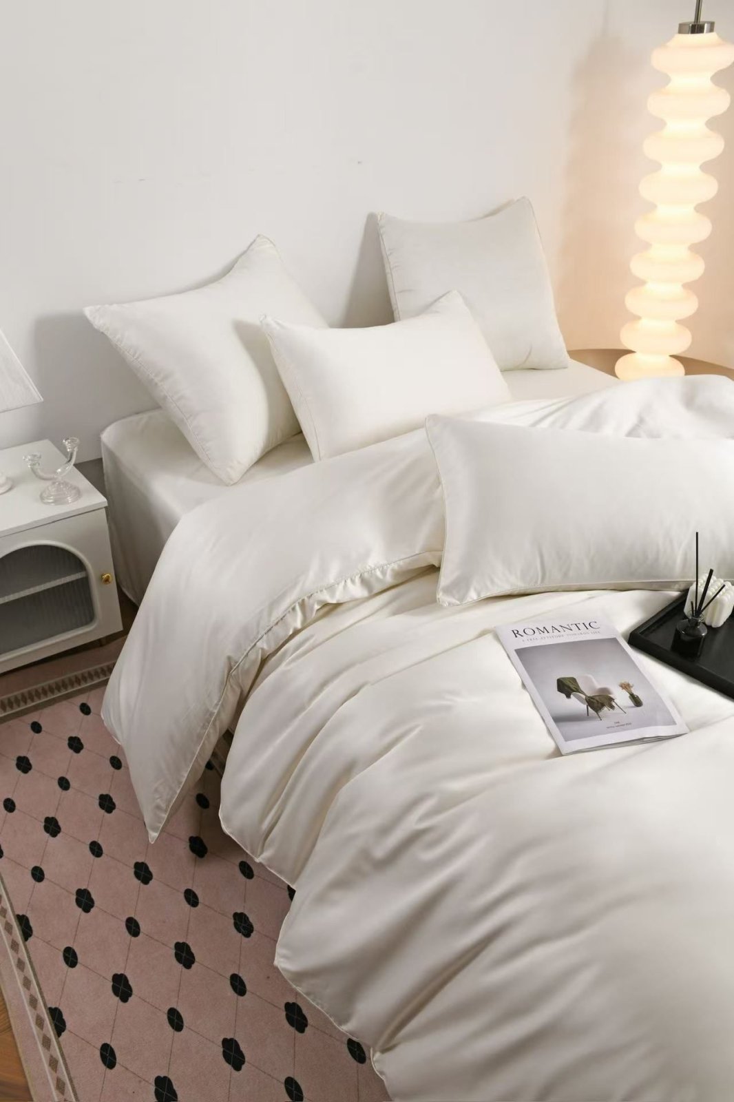 Lenjerie De Pat Premium Din Matase 6 Piese - Alb Unt
