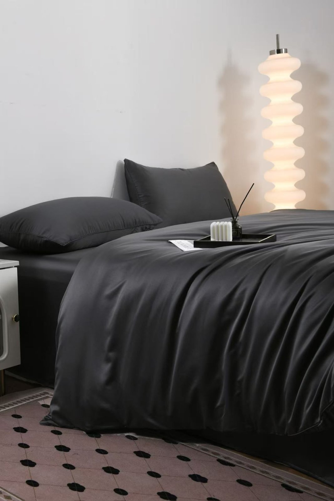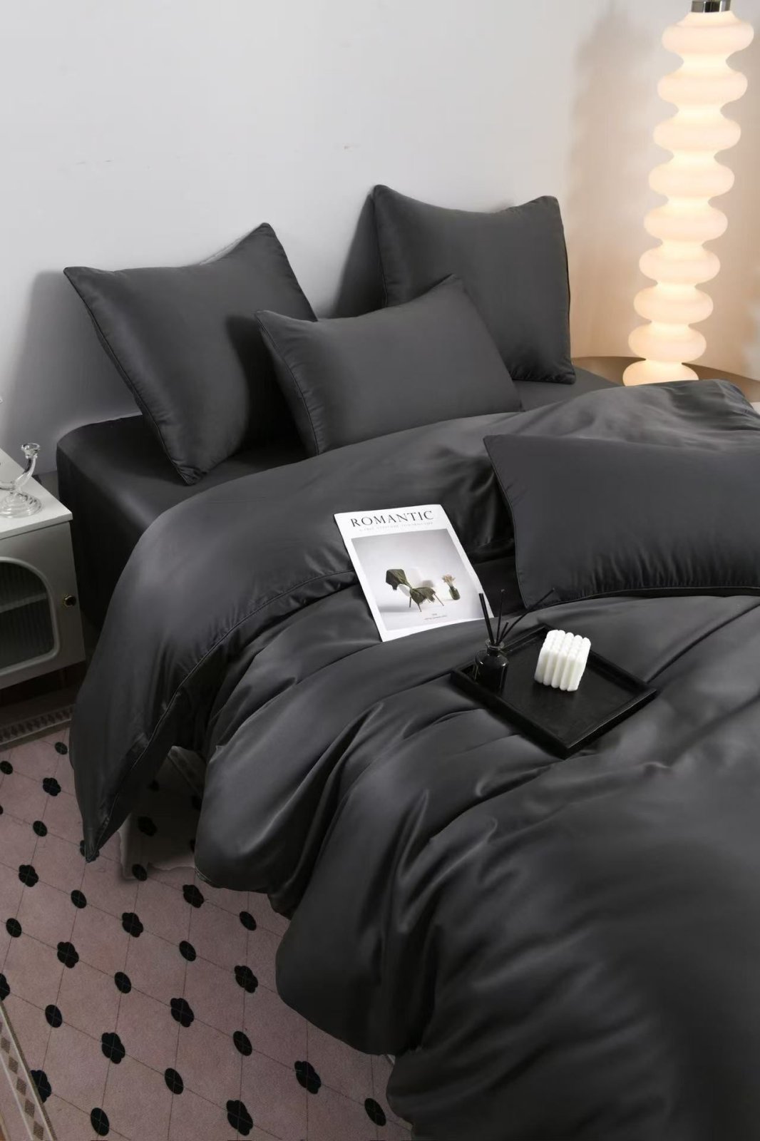 Lenjerie De Pat Premium Din Matase 6 Piese - Gri Antracit