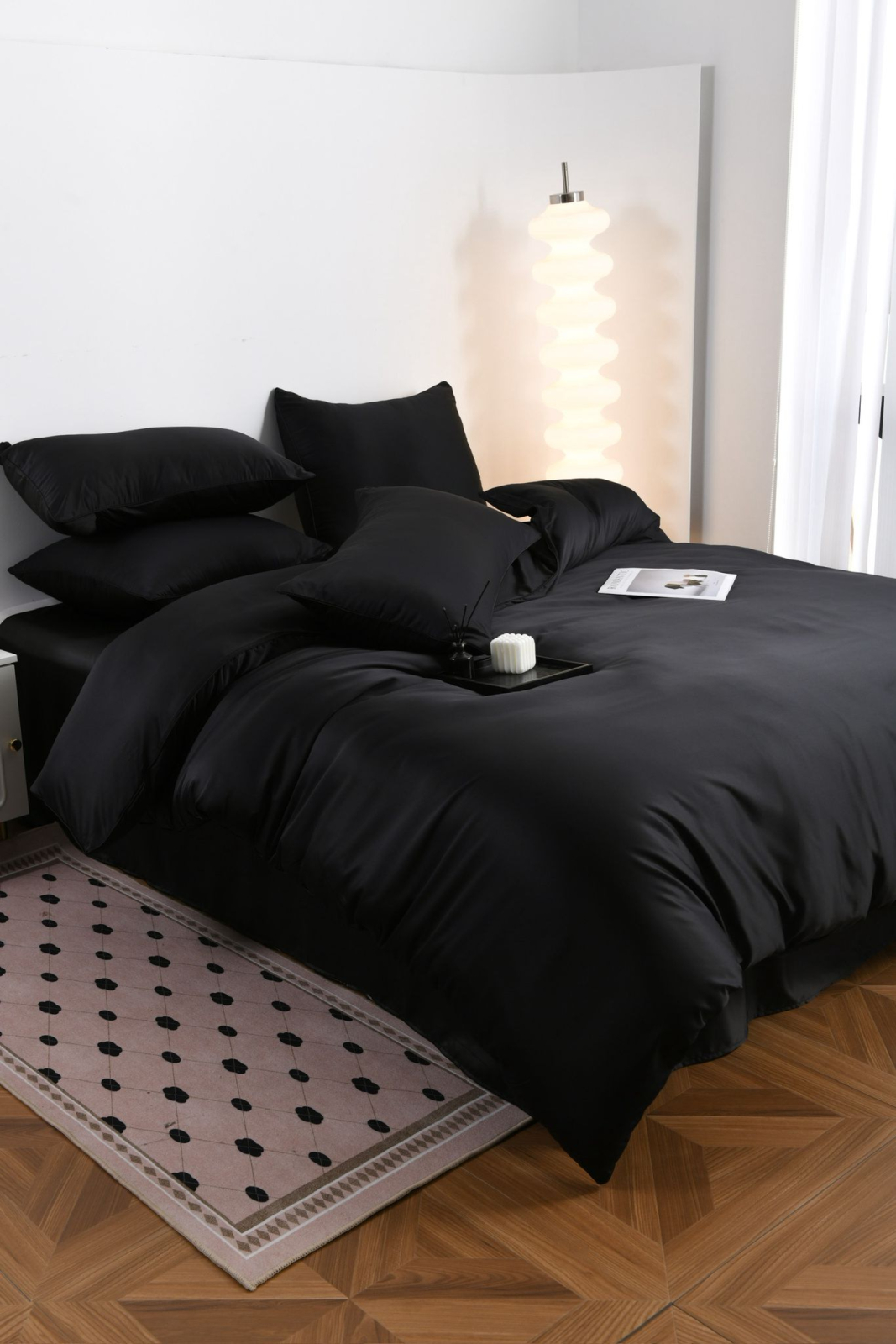 Design Elegant: Fiecare piesa din acest set este atent lucrata, cu detalii fine si delicate care adaugă un plus de stil și rafinament. Disponibil în culori sofisticate, setul se integrează perfect în orice decor de dormitor.
