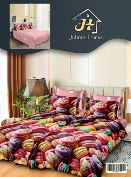 Lenjerie Din Bumbac Satinat 7 Piese Cu 2 Cearceafuri Pilota - Mini Macarons
