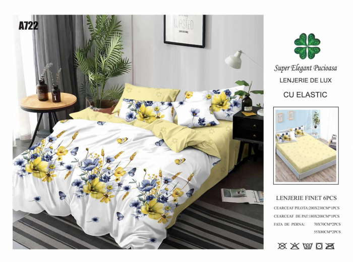 Cearceaful de pat cu elastic foarte practic, acesta nu mai iese de sub saltea, iar patul este mereu aranjat.