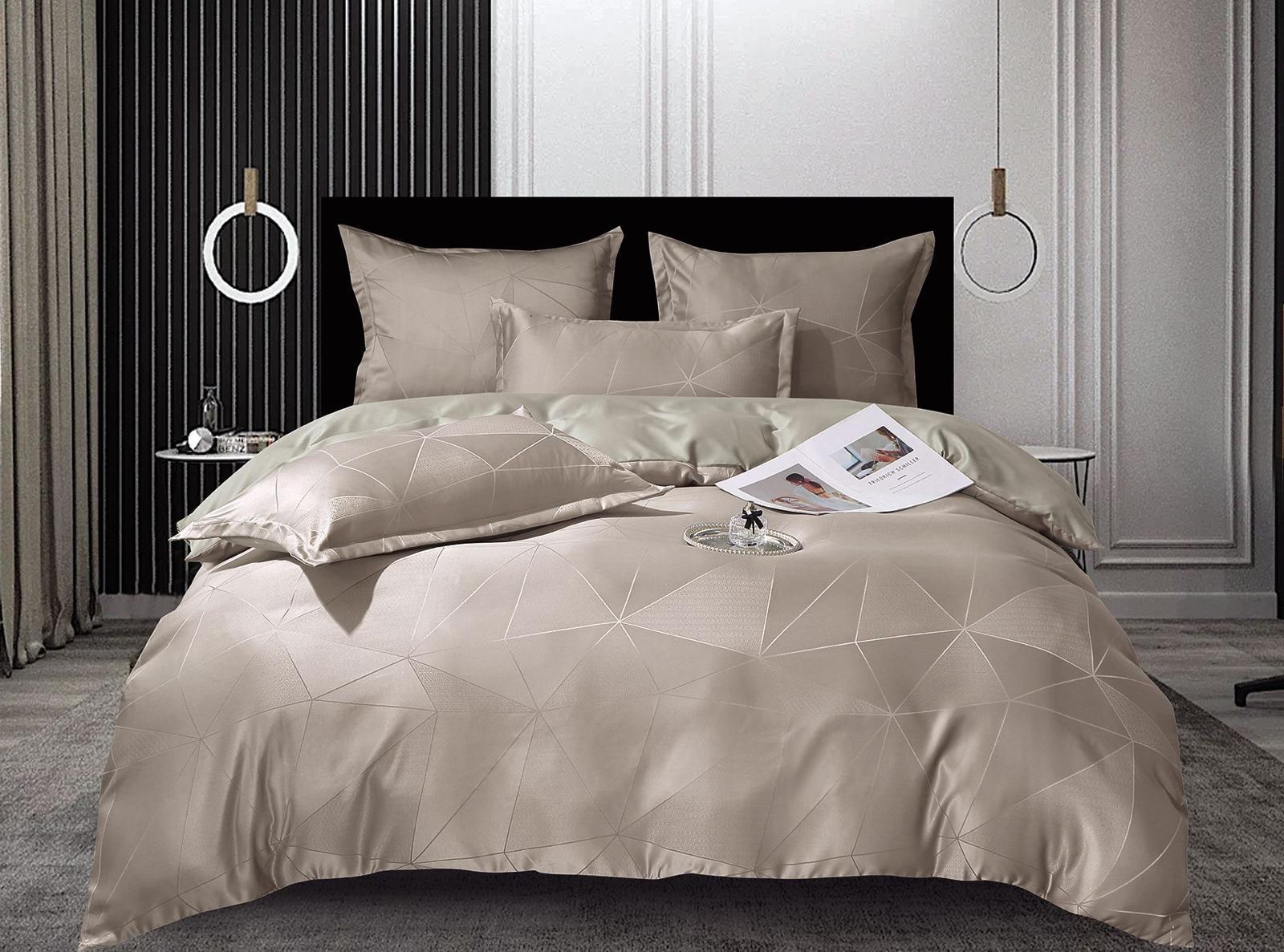 Lenjerie Jacquard Satinat Cu Elastic - Bej Triunghiuri