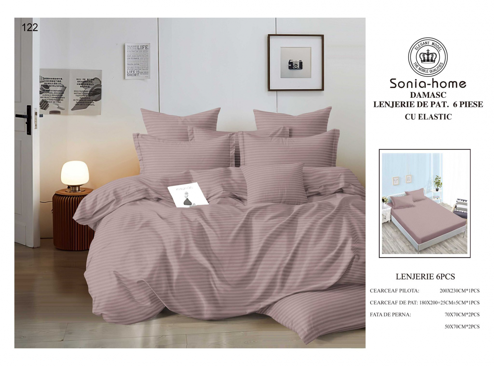 Simte-te ca la hotel, chiar la tine acasa! Lenjeriile sunt confectionate din Bumbac Tip Damasc de calitate superioara, material cu o tesatura densa si racoroasa. Lenjeriile confectionate din acest tip de material sunt deosebit de moi, netede şi confortabile - cea mai bună calitate , pentru gusturi alese.