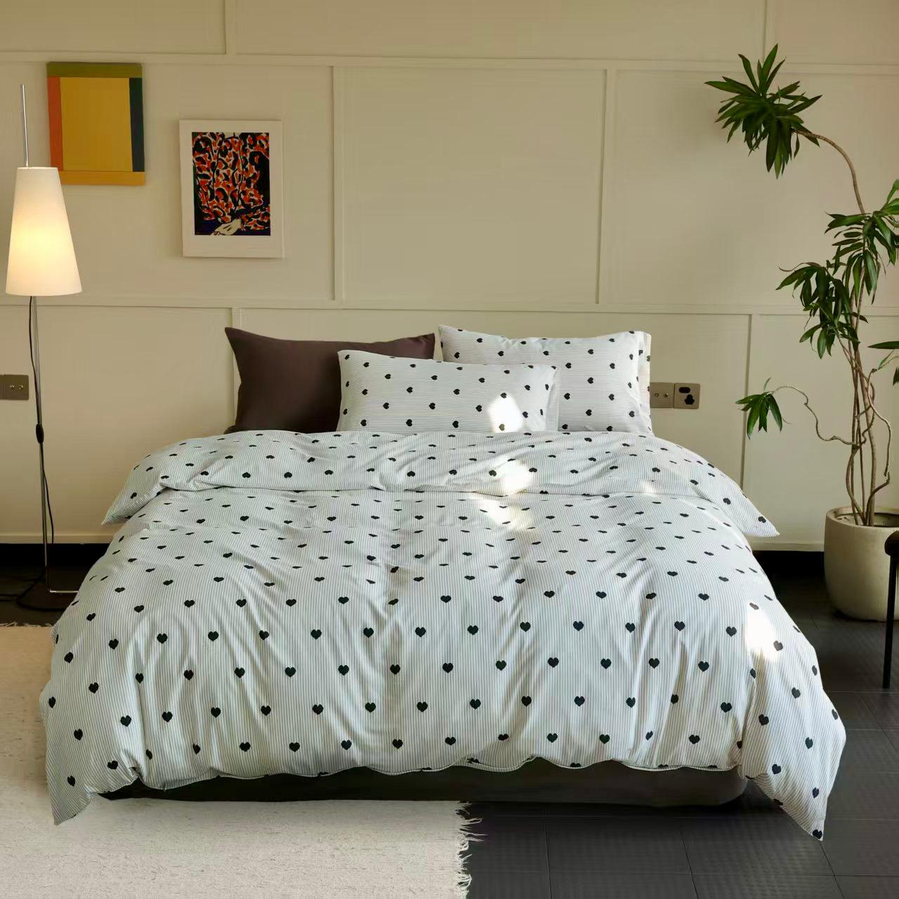Lenjerie De Pat Bumbac 100% - Alb Cu Inimioare Negre