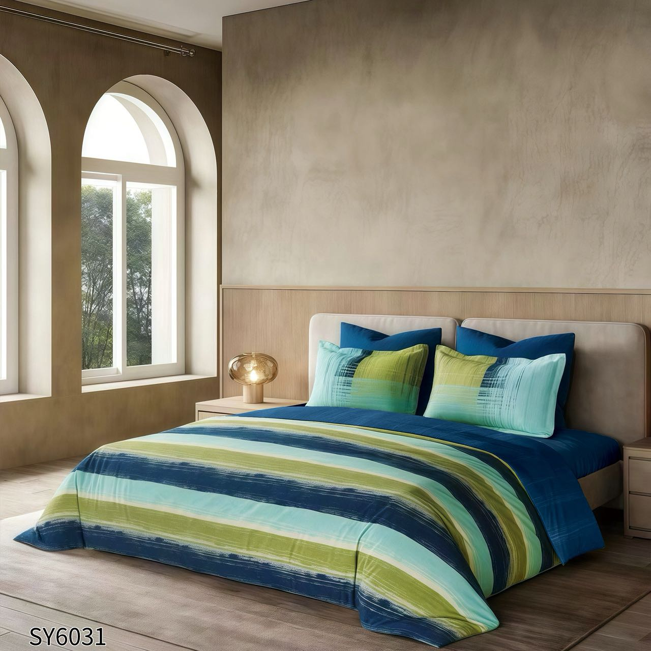 Lenjerie De Pat Din Finet Imprimat Digital Cu Elastic - Dungi Pictate