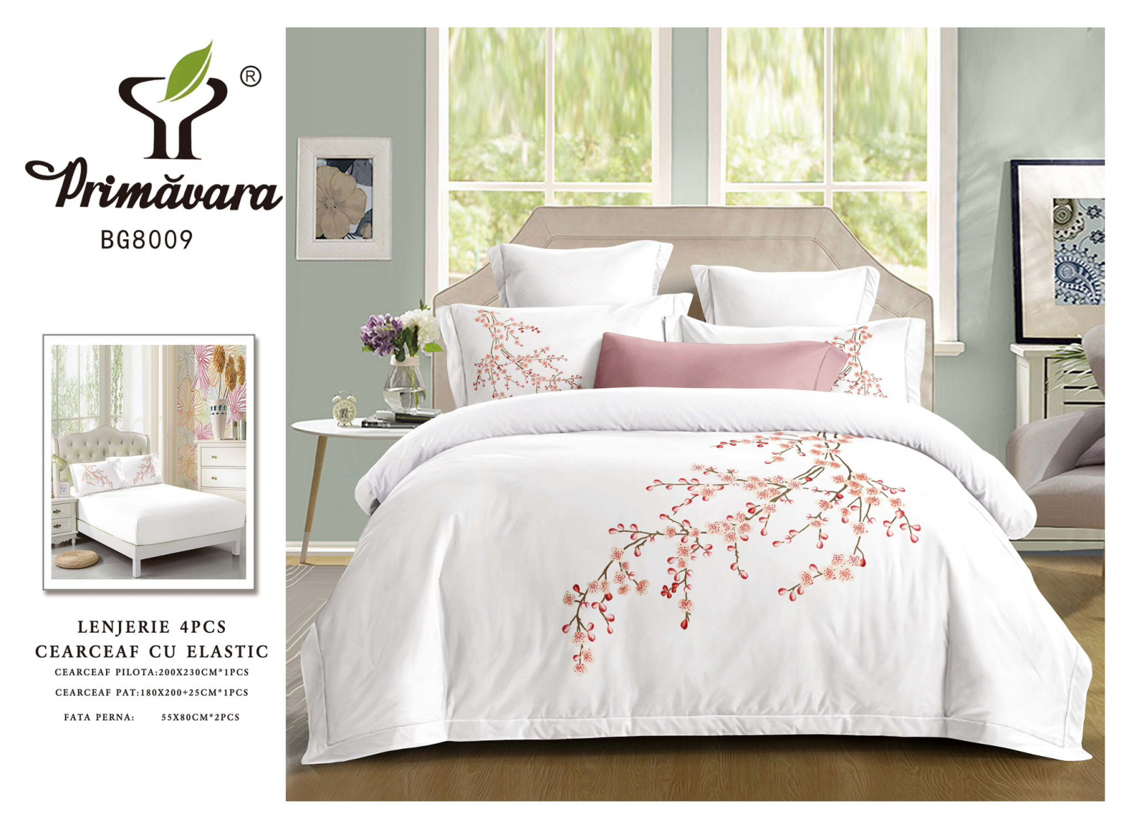 Lenjerie Din Bumbac Tip Finet Premium Cu Elastic - Alb Flori De Cires
