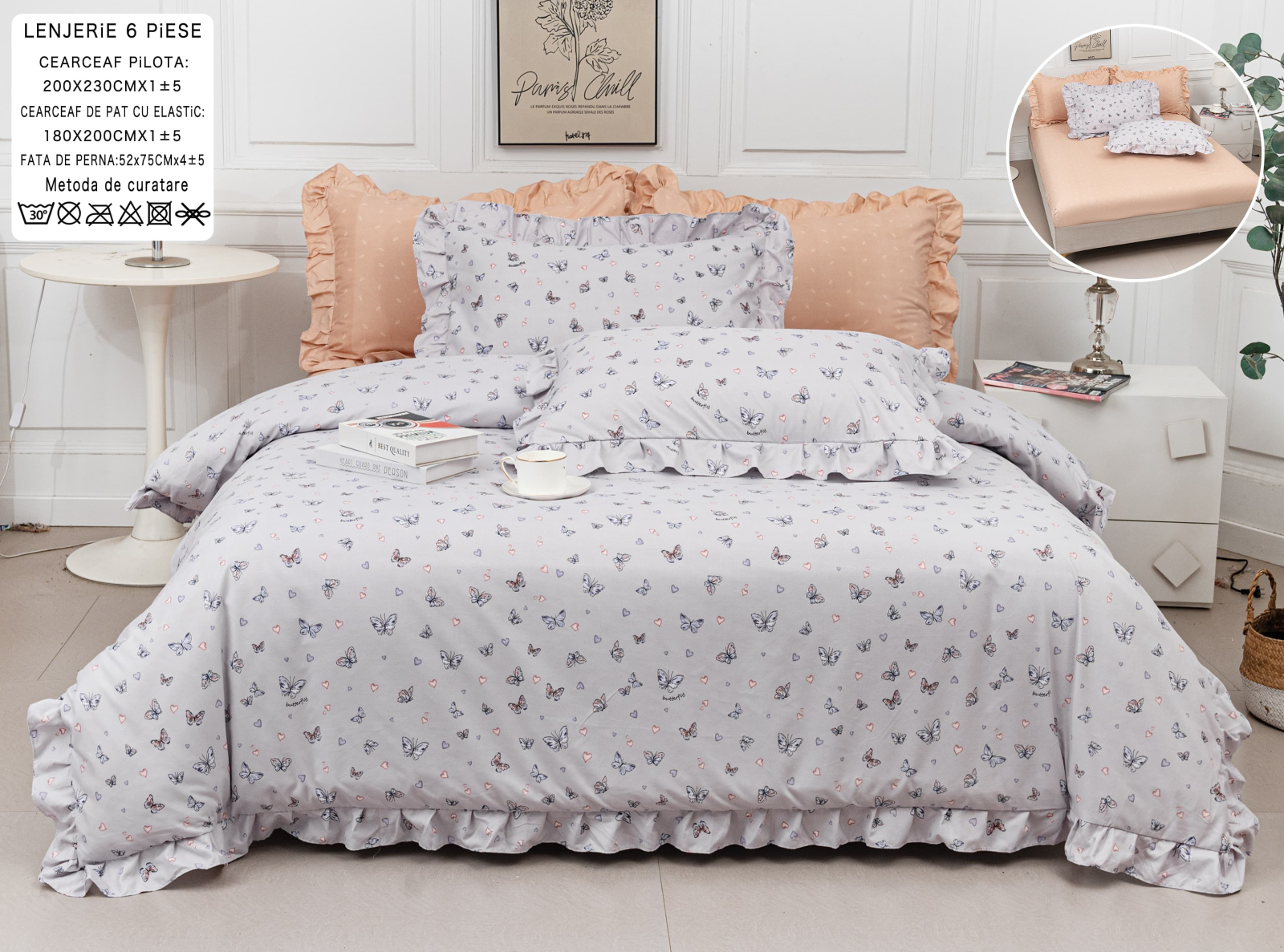 Lenjeriile de pat din bumbac tip finet cu textura fina, modele cu volanas, sunt lenjerii de calitate superioara, menite sa satisfaca cele mai exigente cerinte.