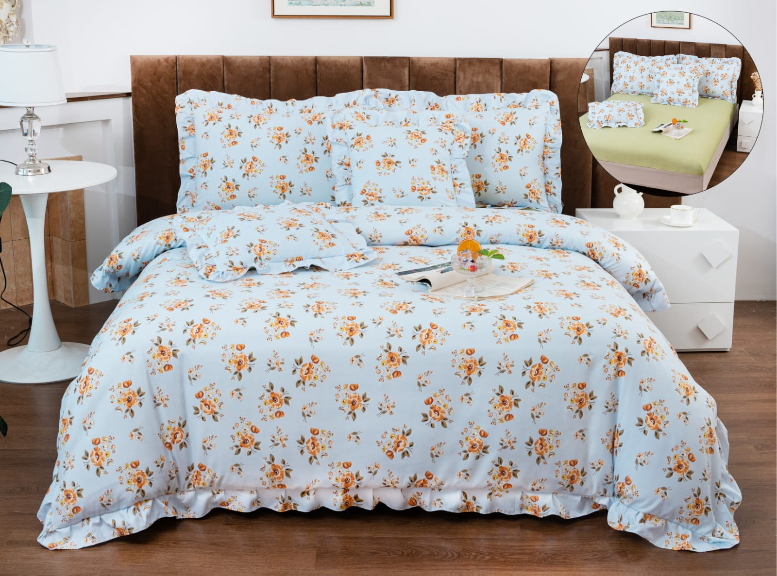 Lenjerie Din Bumbac Tip Finet Cu Elastic Model Volanas - Bleu Boem Floral