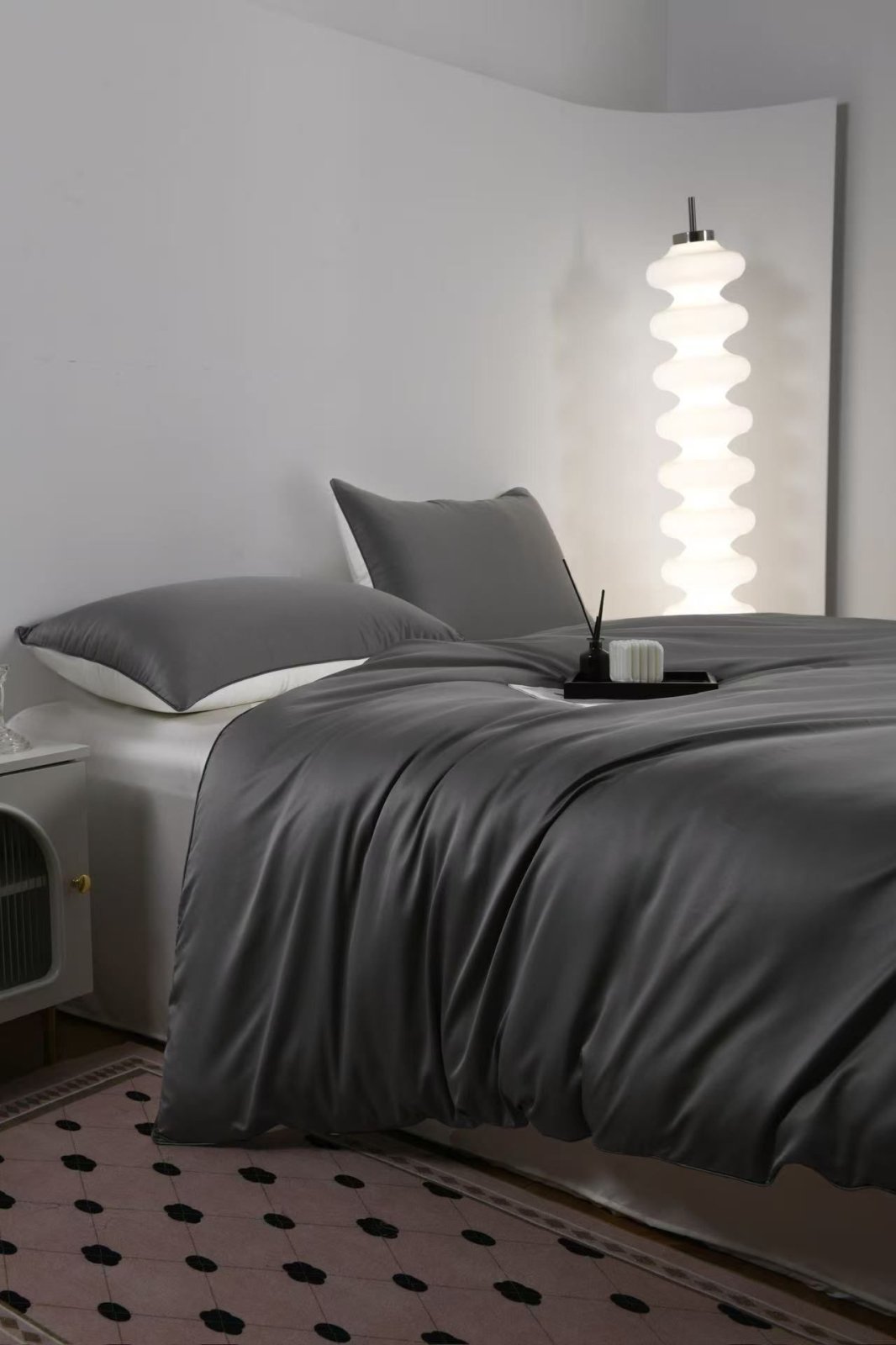 Lenjerie De Pat Premium Din Matase 6 Piese - Gri Cu Gri Deschis