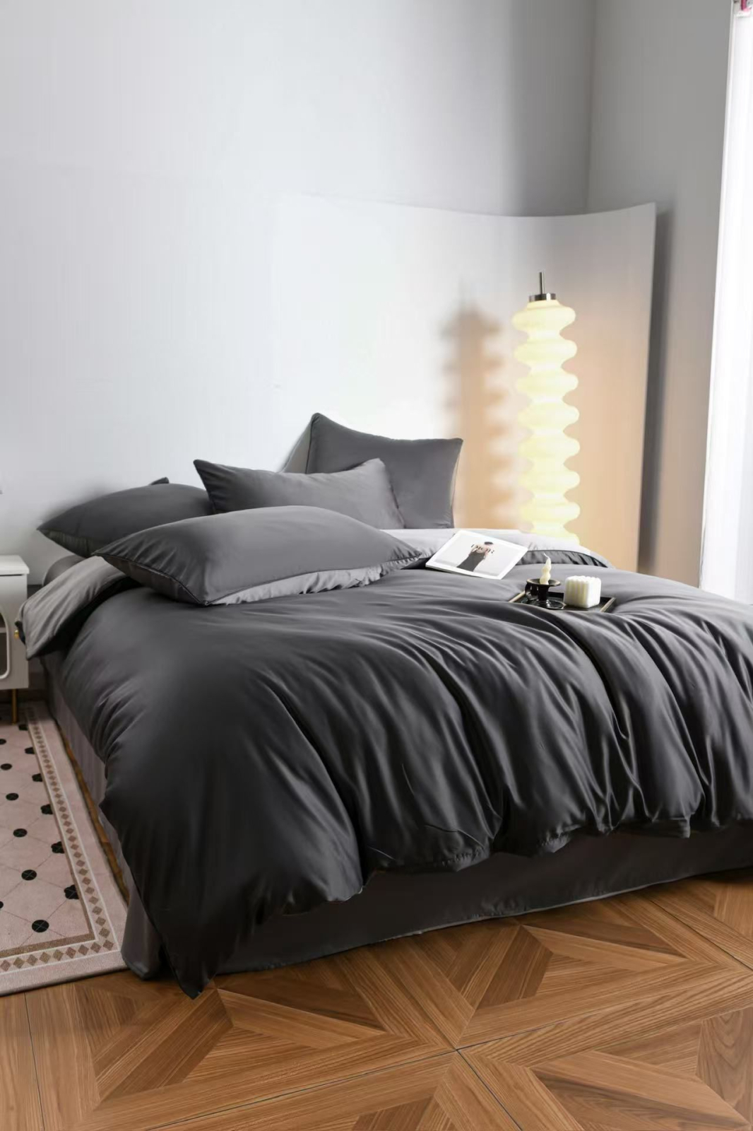 Lenjerie De Pat Premium Din Matase 6 Piese - Gri Inchis Si Gri Deschis