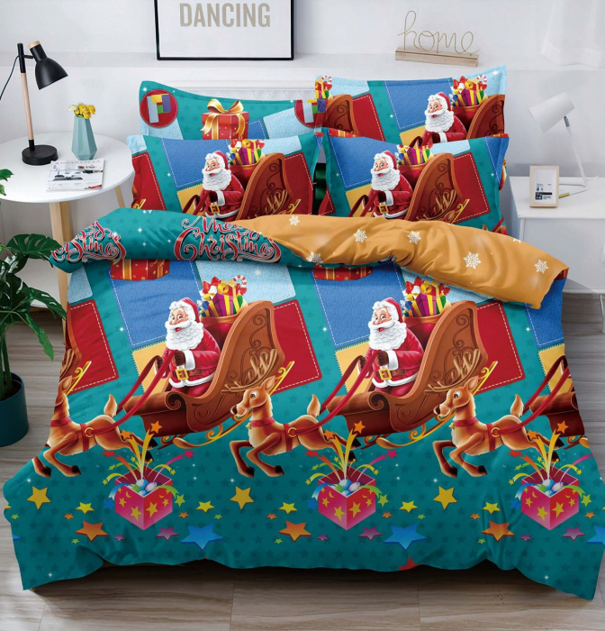 Lenjerie De Pat Finet Cu Elastic Craciun - Sania Vesela A Lui Mos Craciun