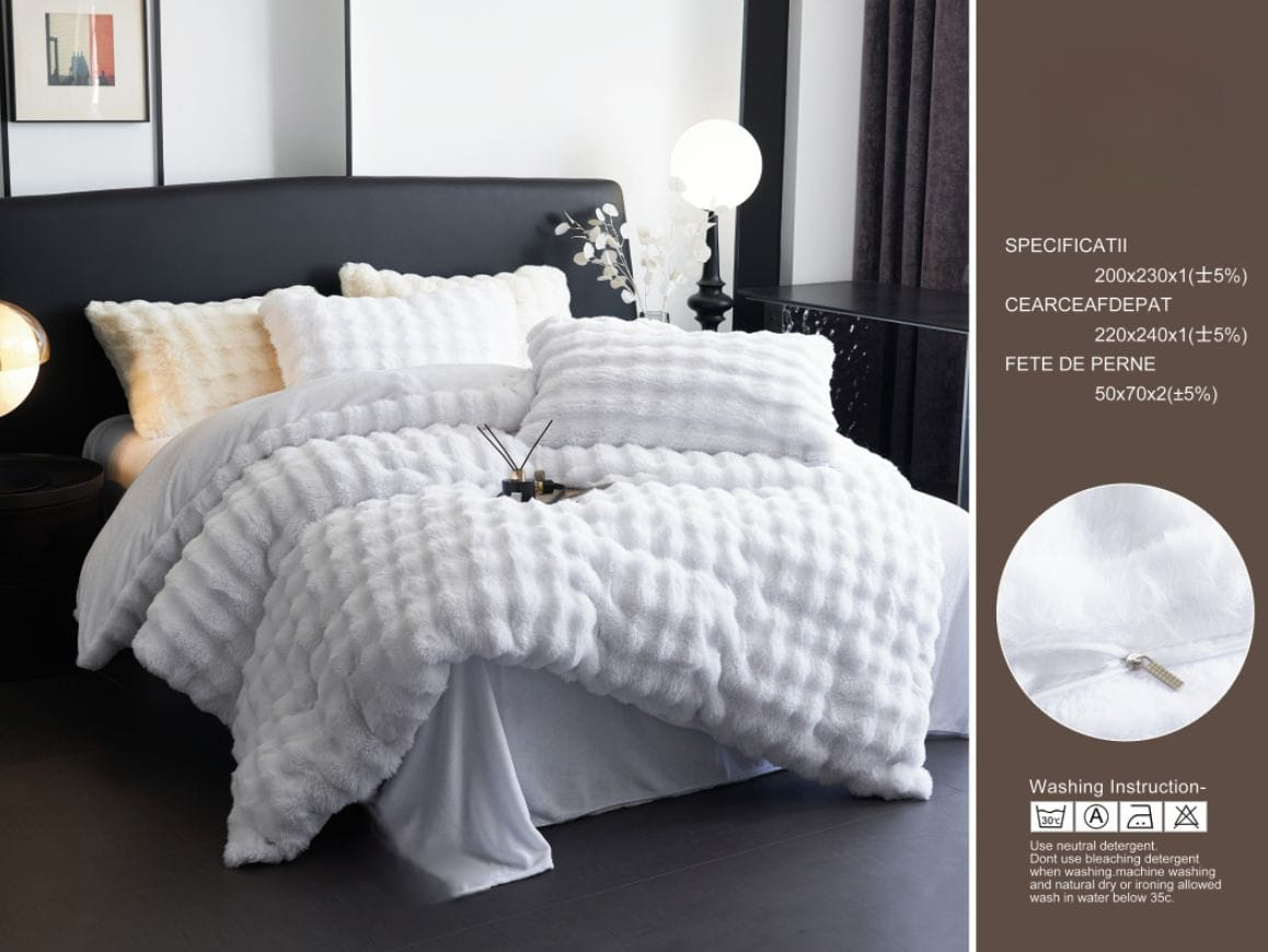 Lenjeriile pufoase cu blana artificiala RABBIT - IEPURE sunt vedetele noului an, sunt cele mai indragite si cautate lenjerii. Sunt atat de moi si de pufoase, incat simti ca dormi pe un norisor.