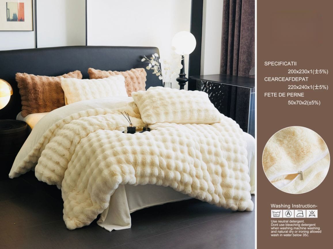 Lenjerie De Pat Pufoasa Blana Artificiala Rabbit - Iepure Crem