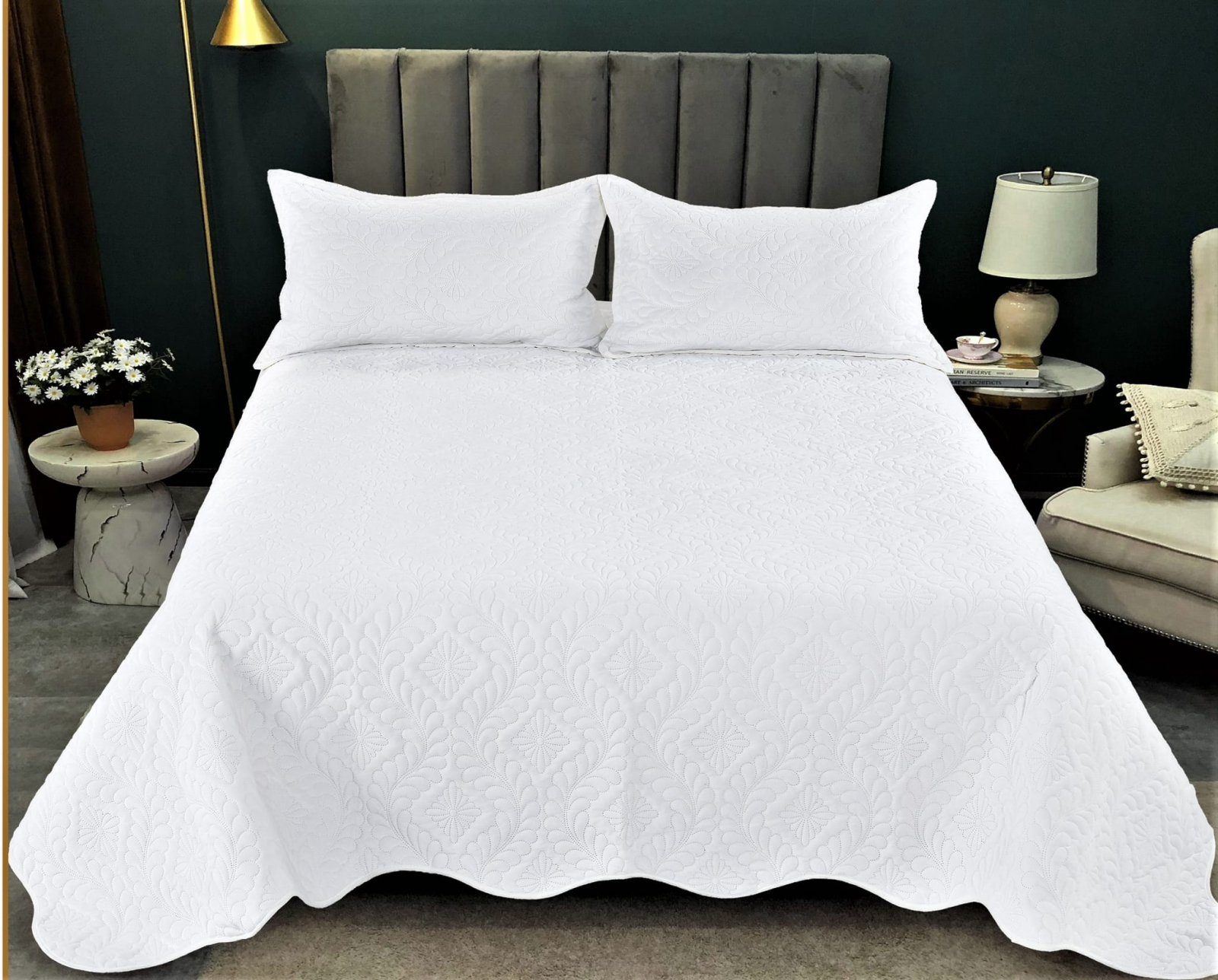 Cuvertura de pat are doua fete, pe o parte este din catifea, iar pe cealalta parte este din bumbac maltasat, este atent lucrata, avand cusaturi realizate la cele mai inalte standarde.