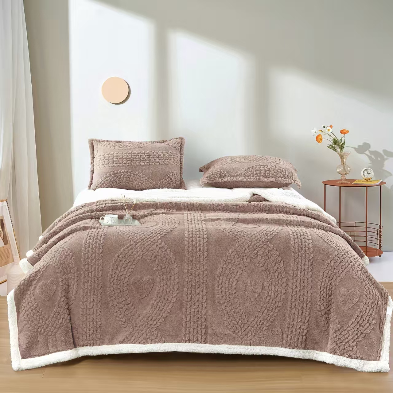 Set Patura Cocolino cu Blanita si Fete de Perna Model in Relief - Bej Cacao cu Lapte