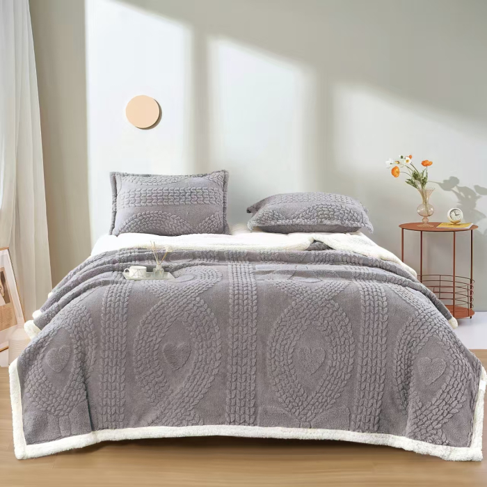 Set Patura Cocolino cu Blanita si Fete de Perna Model in Relief - Gri Deschis