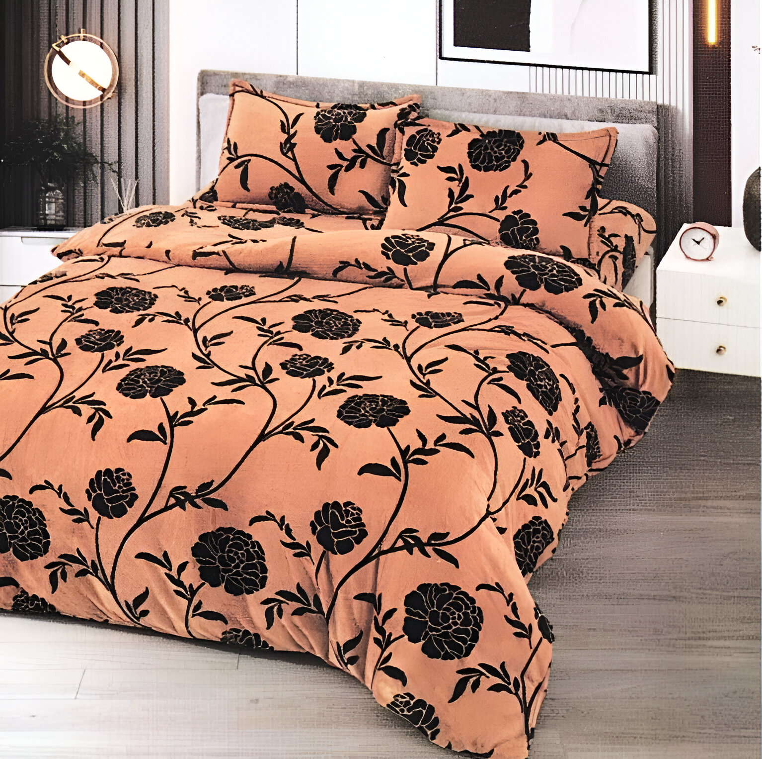 Set Patura Cocolino Cu Blanita si Fete De Perna - Bej cu Flori Negre
